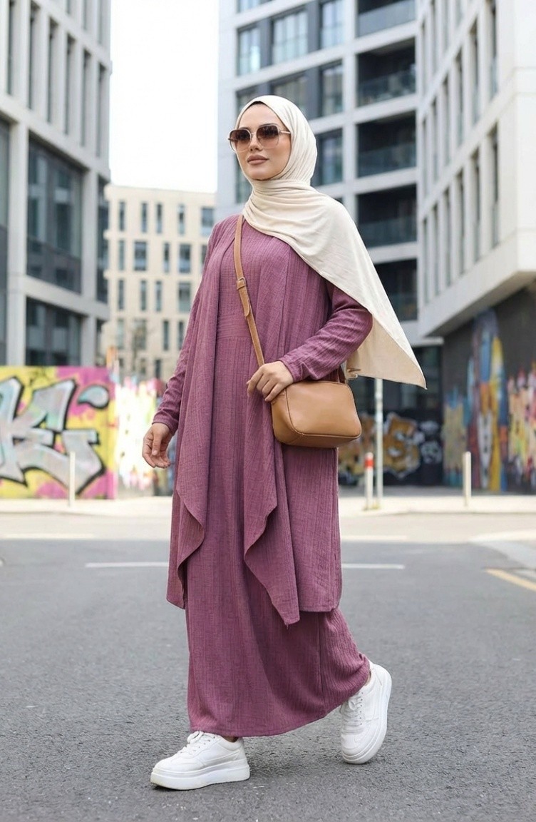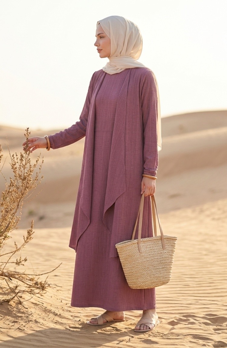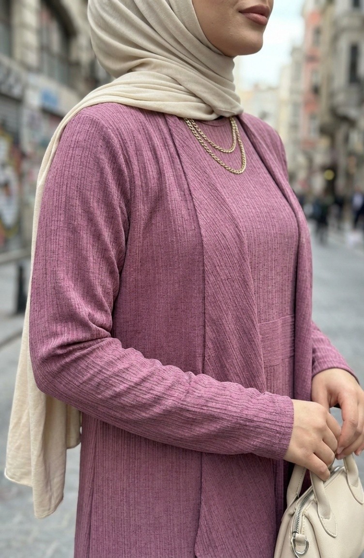Dress And Vest Two-Piece Set 6527-03 Rose Pink 6527-03