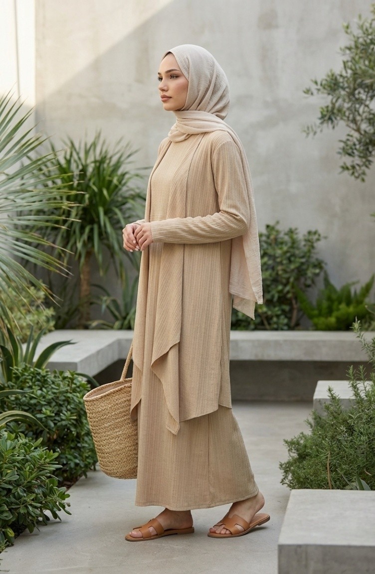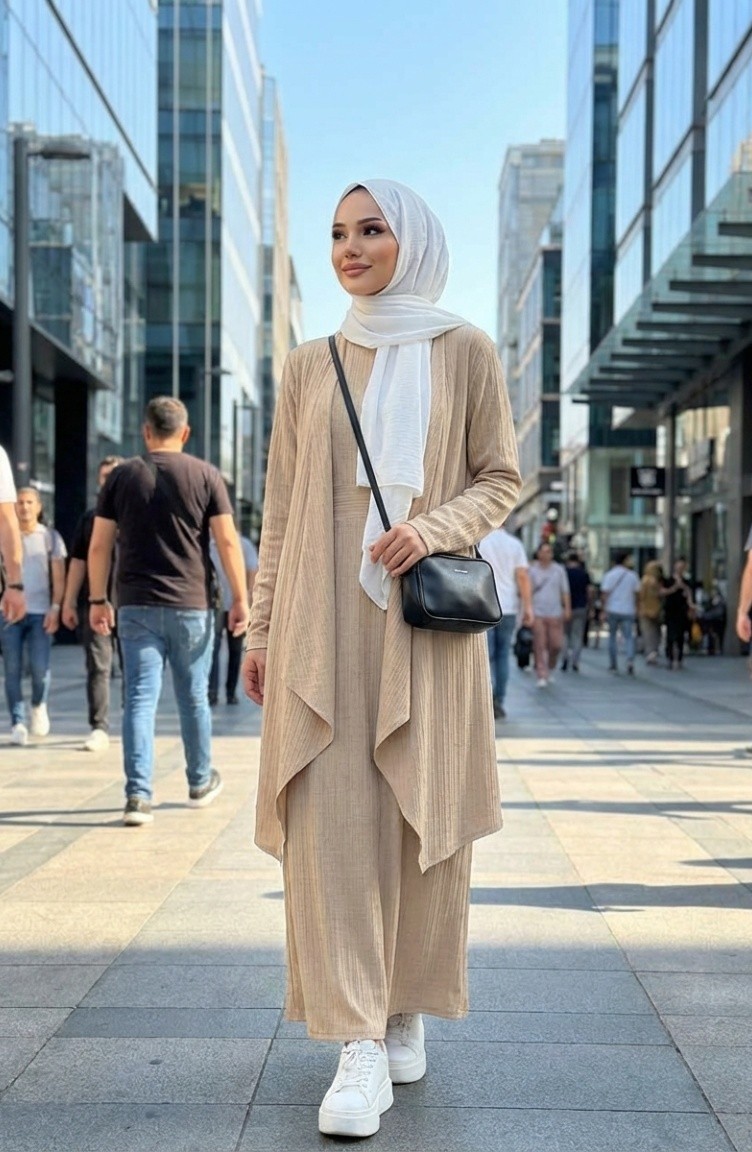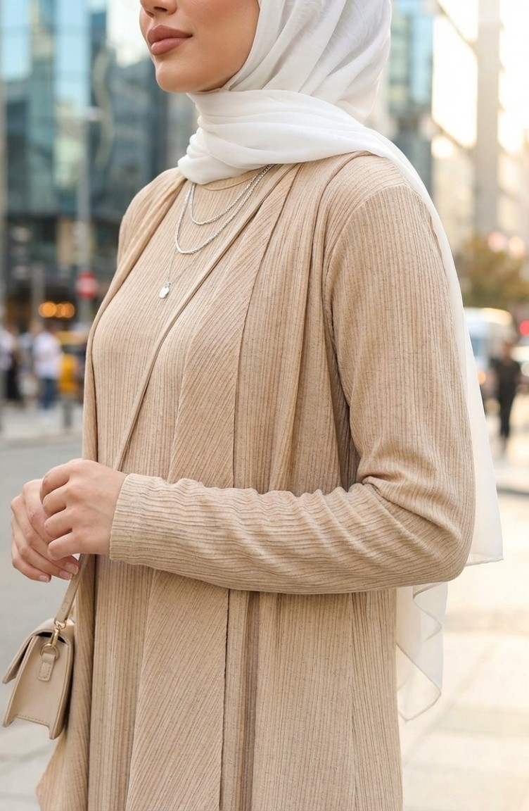 Knitted fabric is used. It has a plain appearance. The Zero collar is preferred for all types of clothing. Suitable for 4 seasons. The size worn by the model, is the one on the image.
