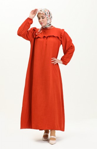 Elastic Sleeve Ruffle Detailed Dress 0110-04 Brick Red 0110-04