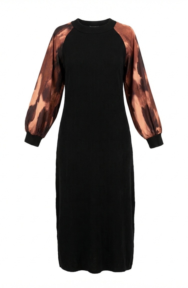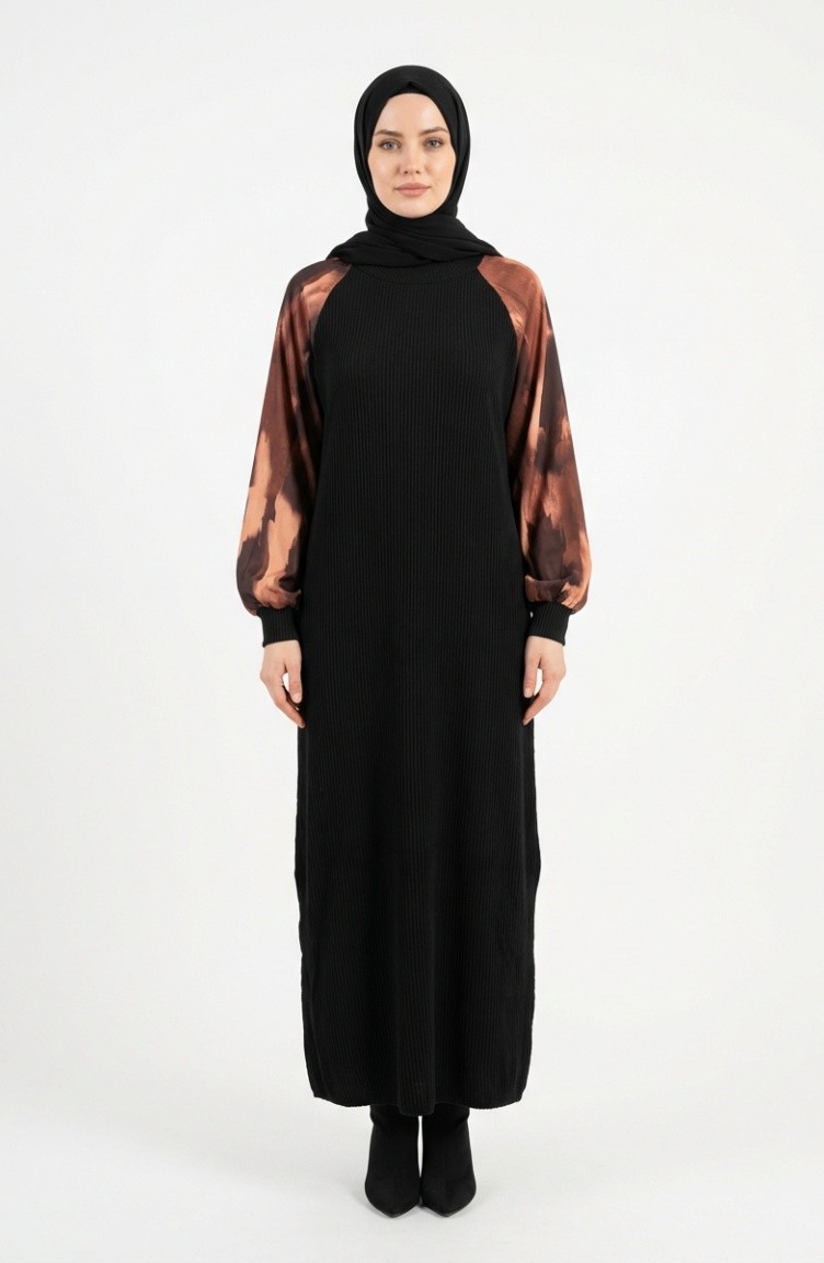 Embellished Patterned Hijab Dress 2217-02 Black Brown 2217-02