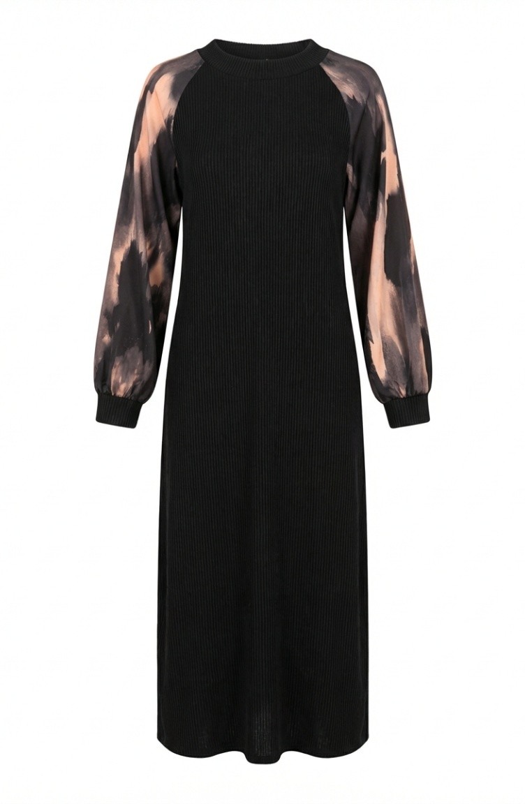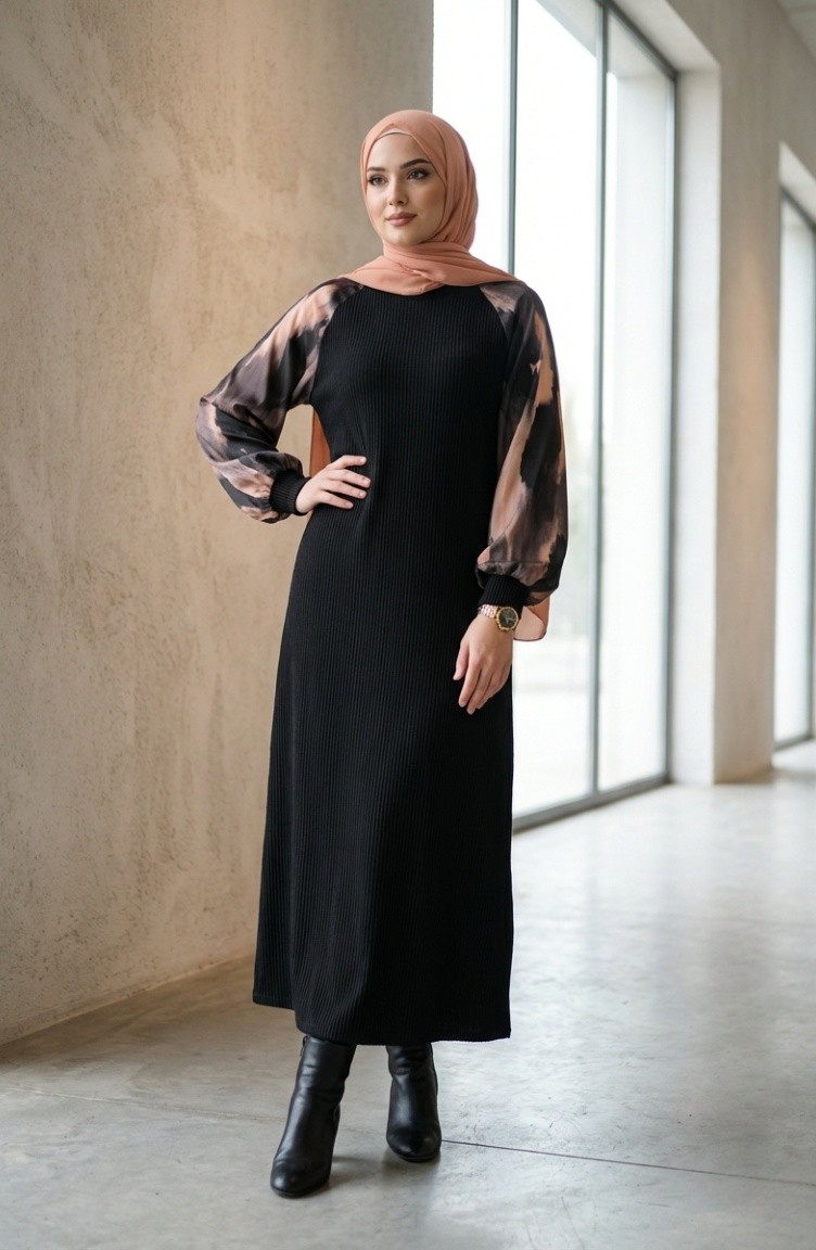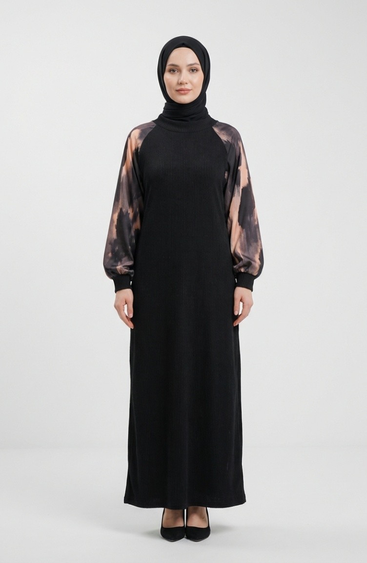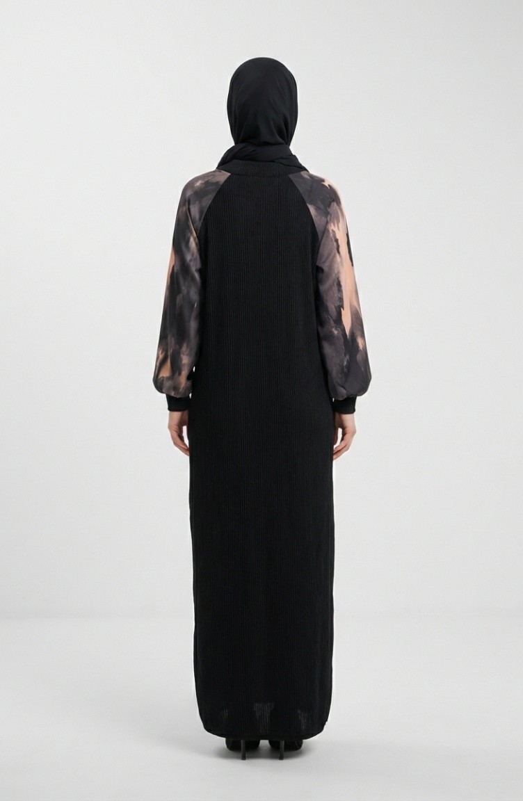 Embellished Patterned Hijab Dress 2217-04 Black Anthracite 2217-04