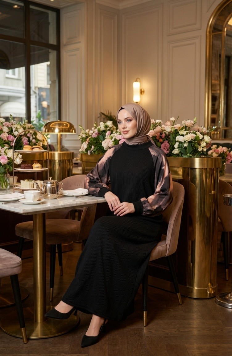 Black color is used. Polyester fabric often prevents wrinkling. Designed with patterned fabric. It's made of elastic sleeves. The Zero collar is preferred for all types of clothing. Suitable for 4 seasons. The size worn by the model, is the one on the image.