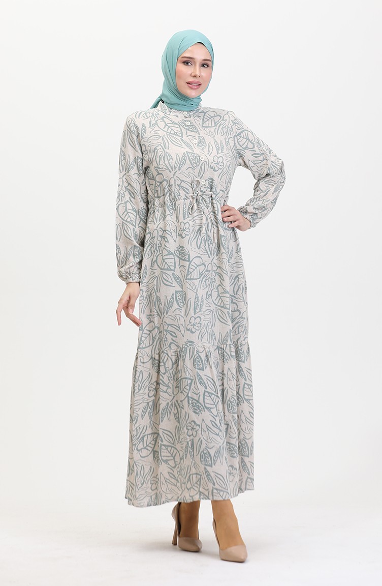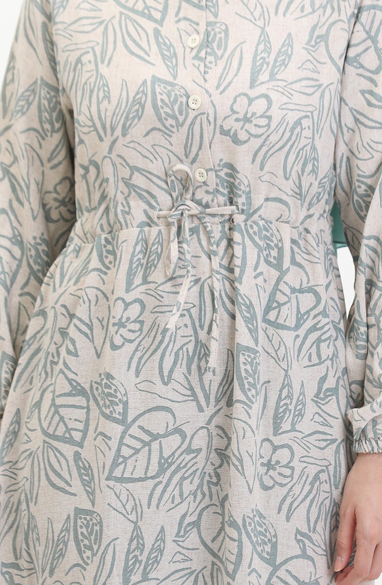 Front Buttoned Laced Linen Dress 0520B-02 Beige Almond Green 0520B-02