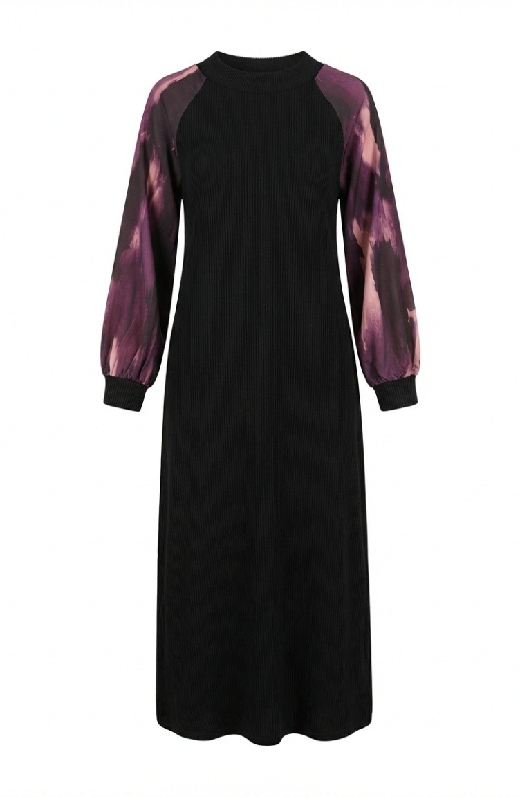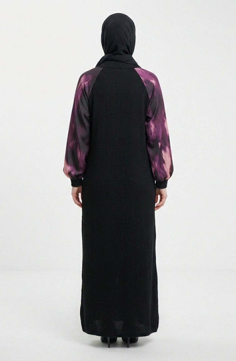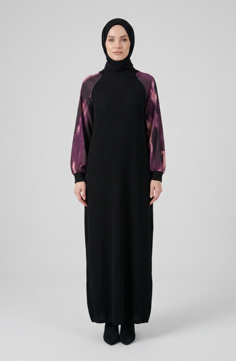 Embellished Patterned Hijab Dress 2217-01 Black Purple 2217-01