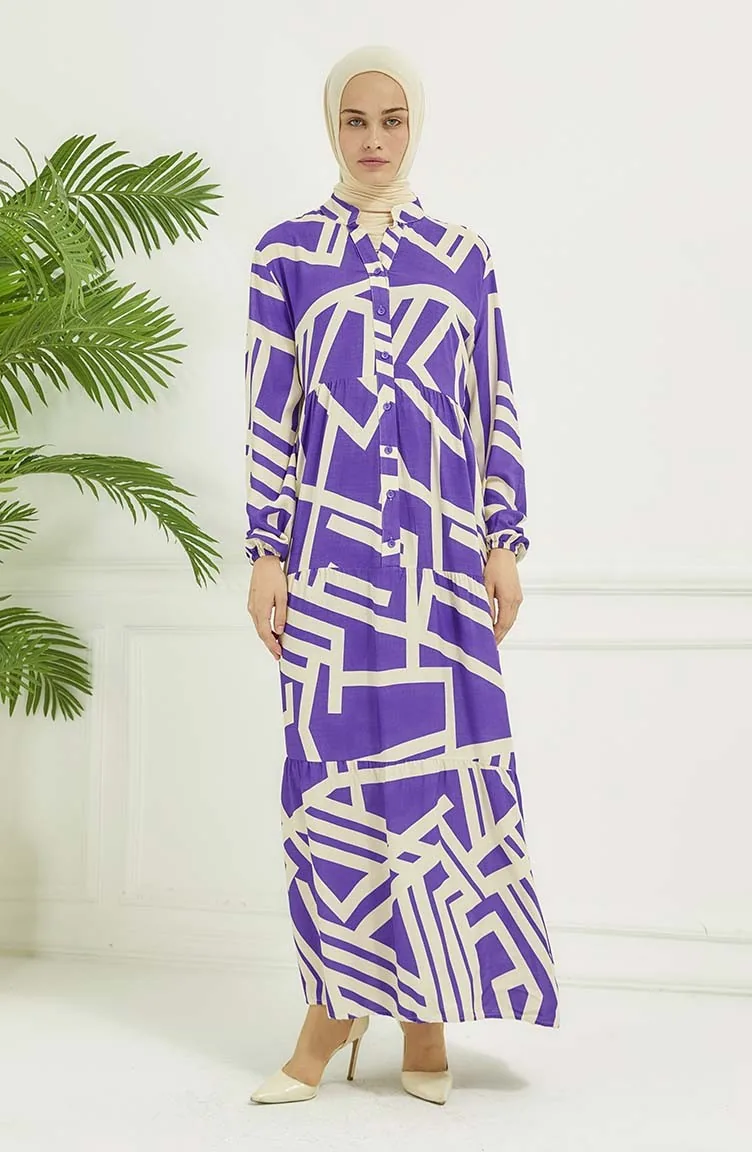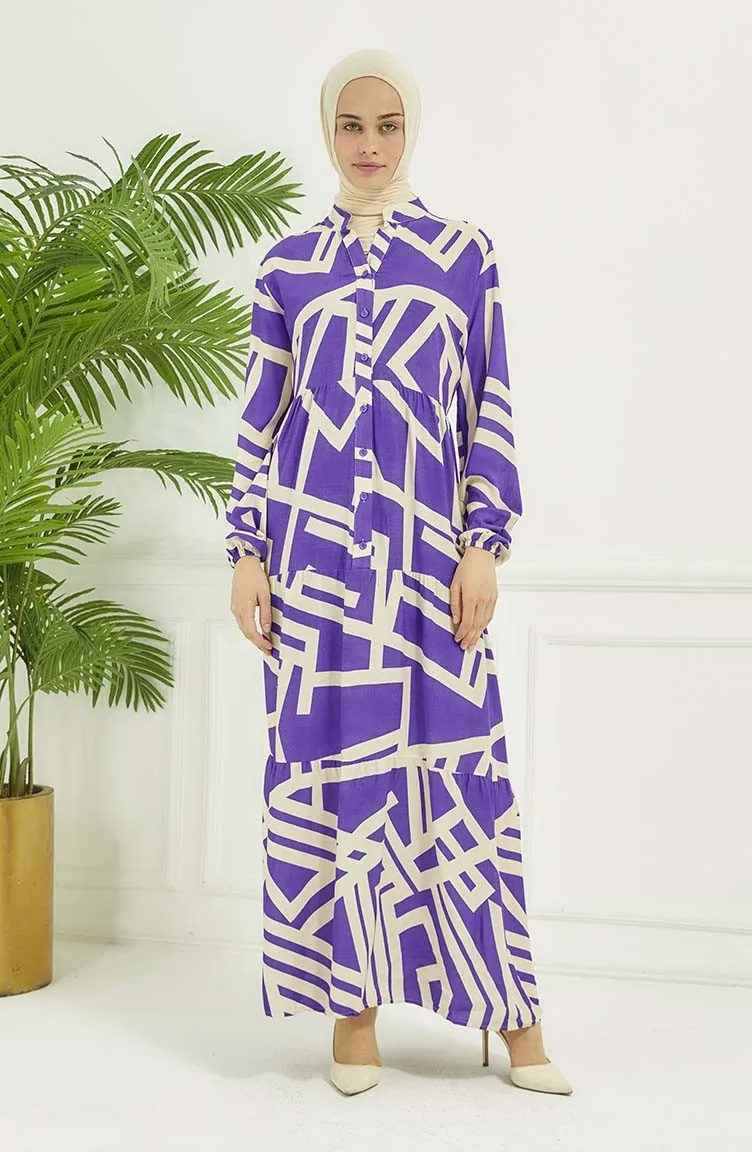 Geometric Pattern Dress 4106-02 Lilac 4106-02