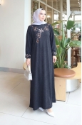 Knitted Fabric Winter Modest Dress With Button Detail 2179-01 Black 2179-01
