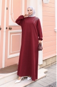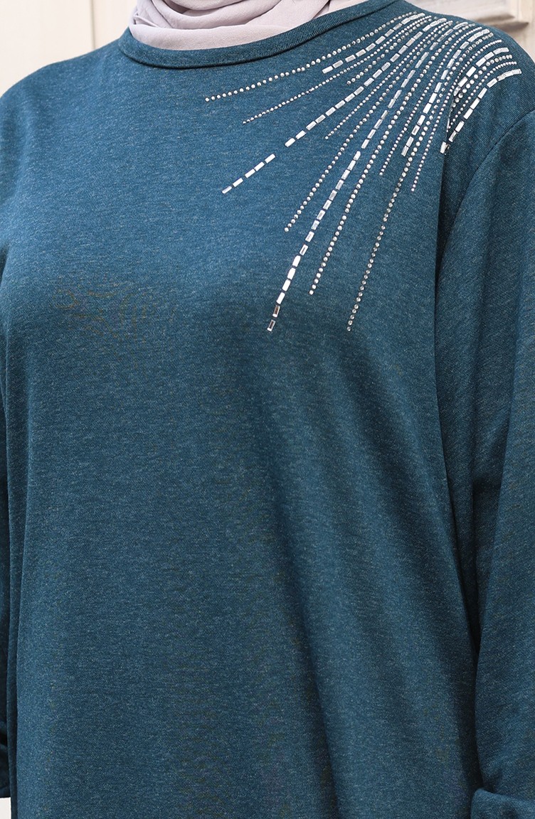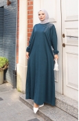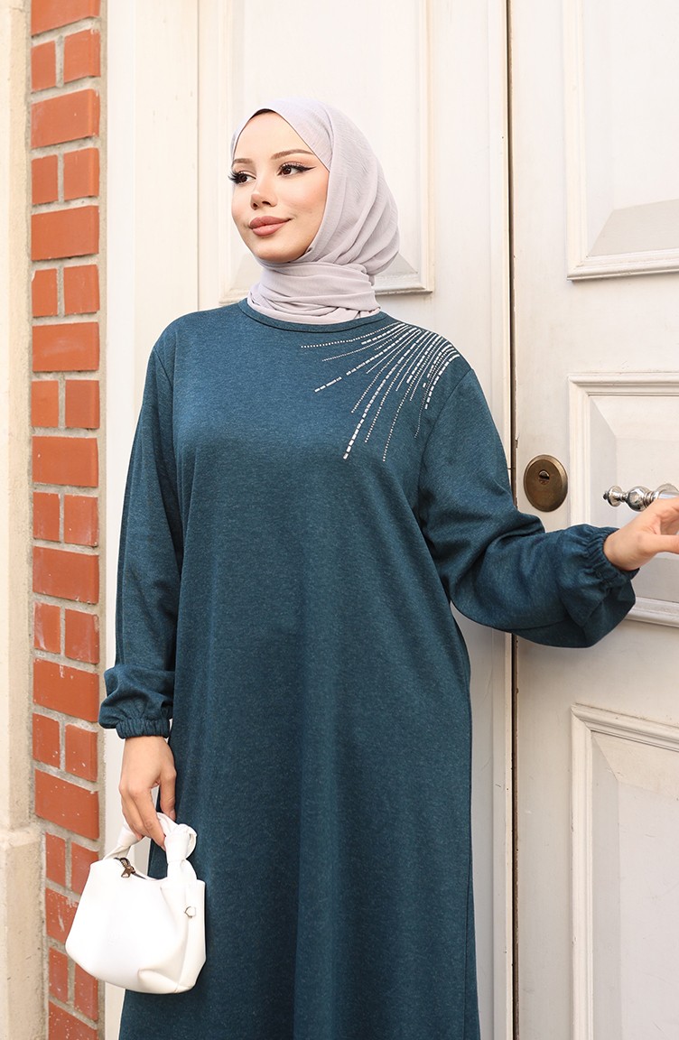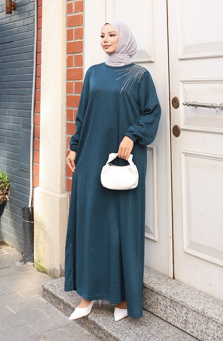 Knitted Winter Fabric Stone Embroidered Hijab Dress 2181-02 Petrol 2181-02