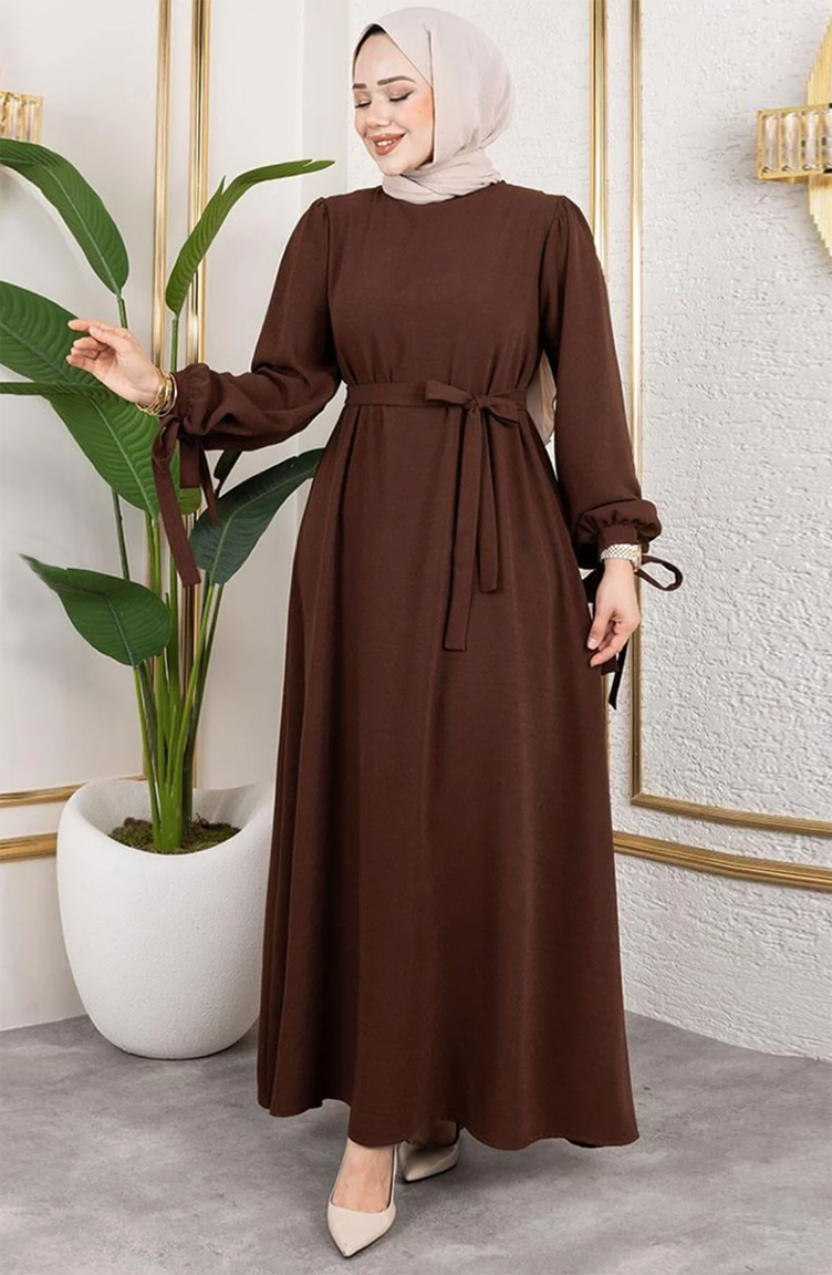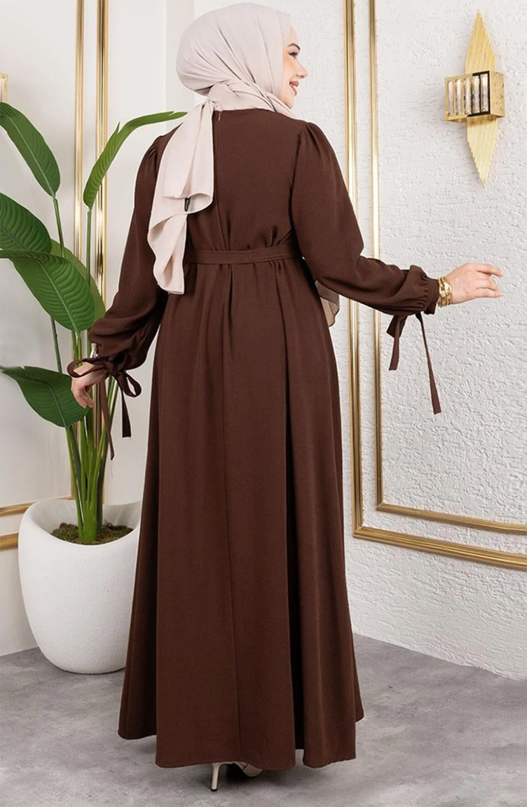Lace-Up Cuffed Hijab Dress 7121-10 Brown 7121-10