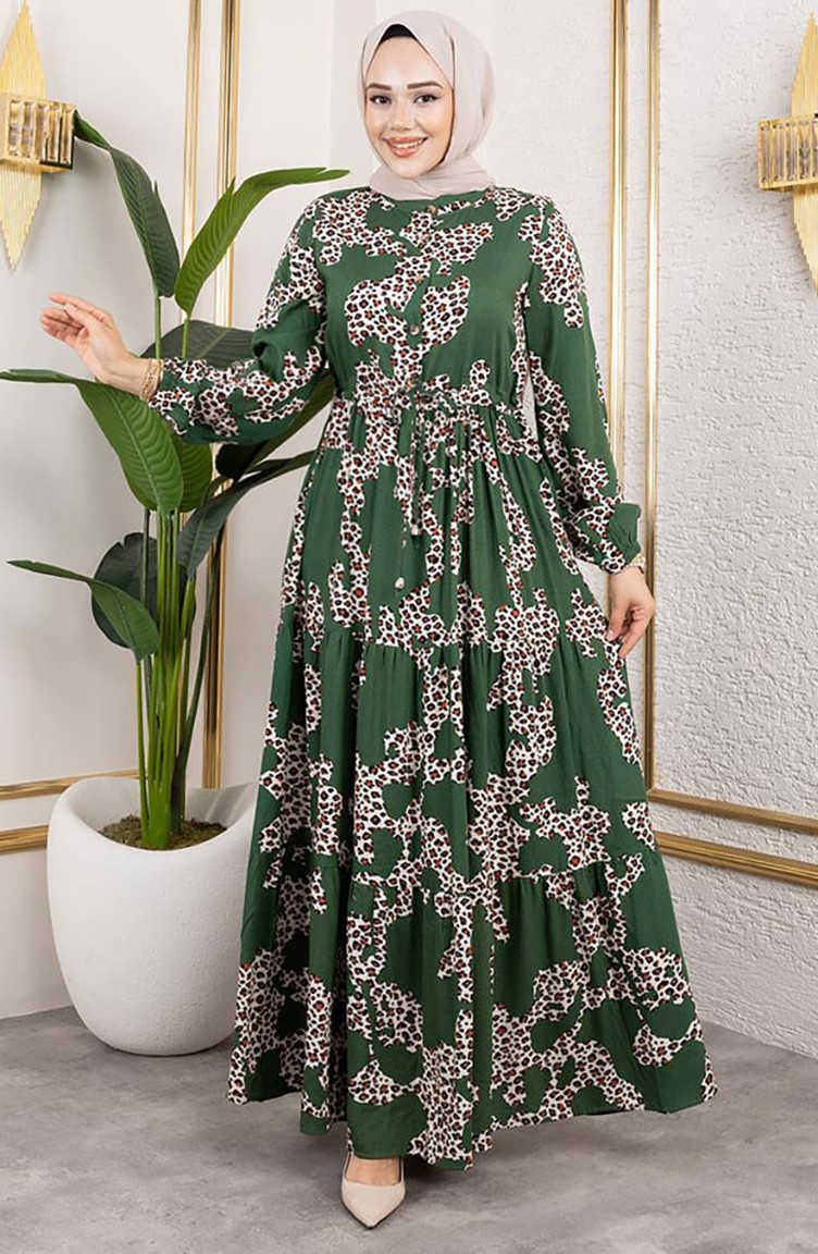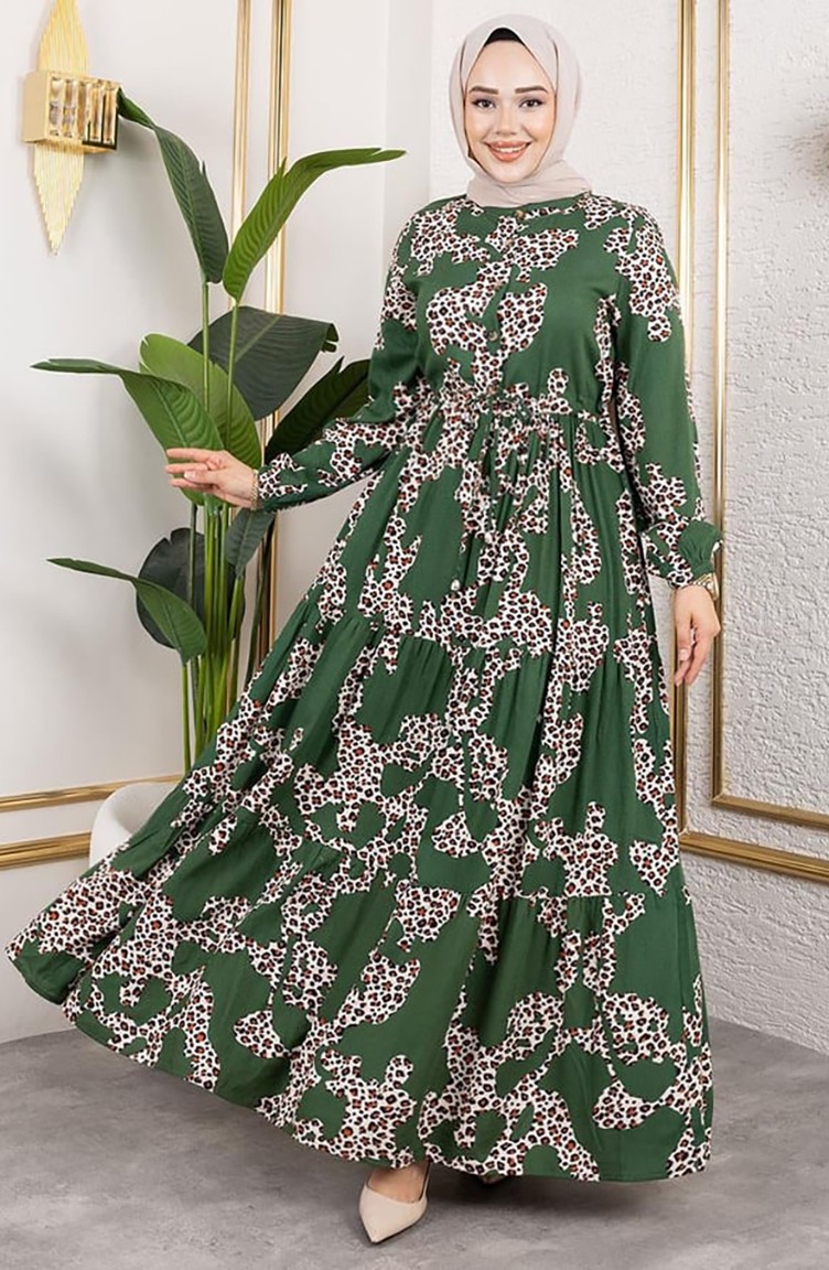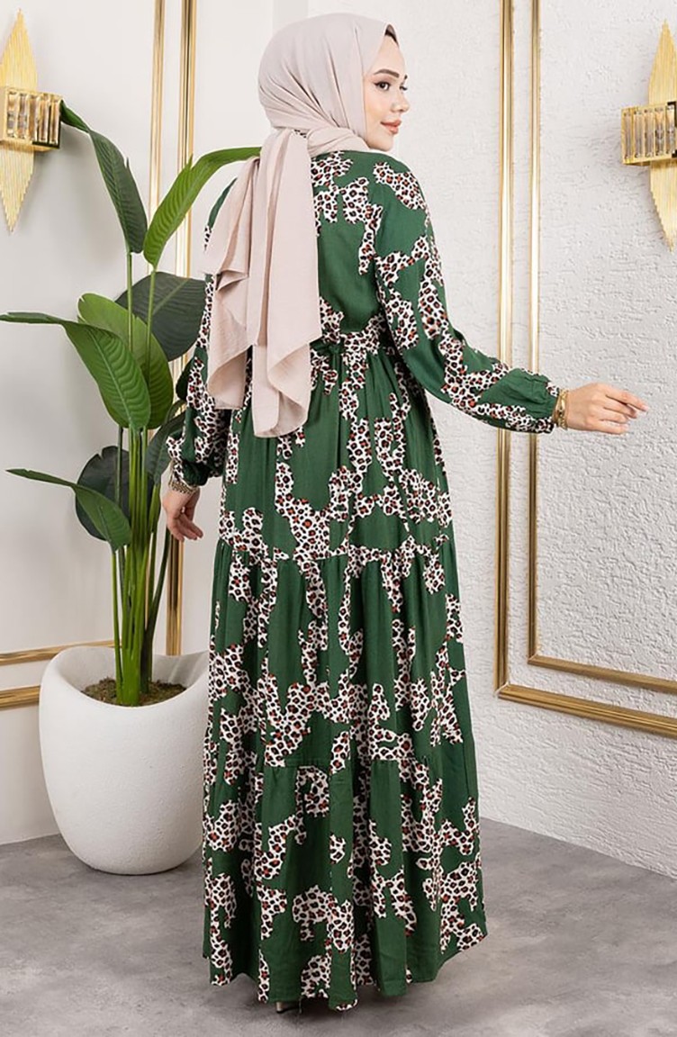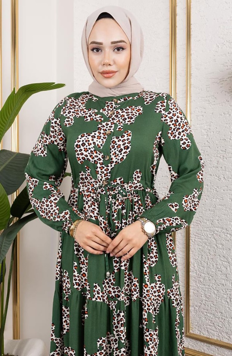 Leopard Patterned Viscose Dress 7135-01 Green 7135-01