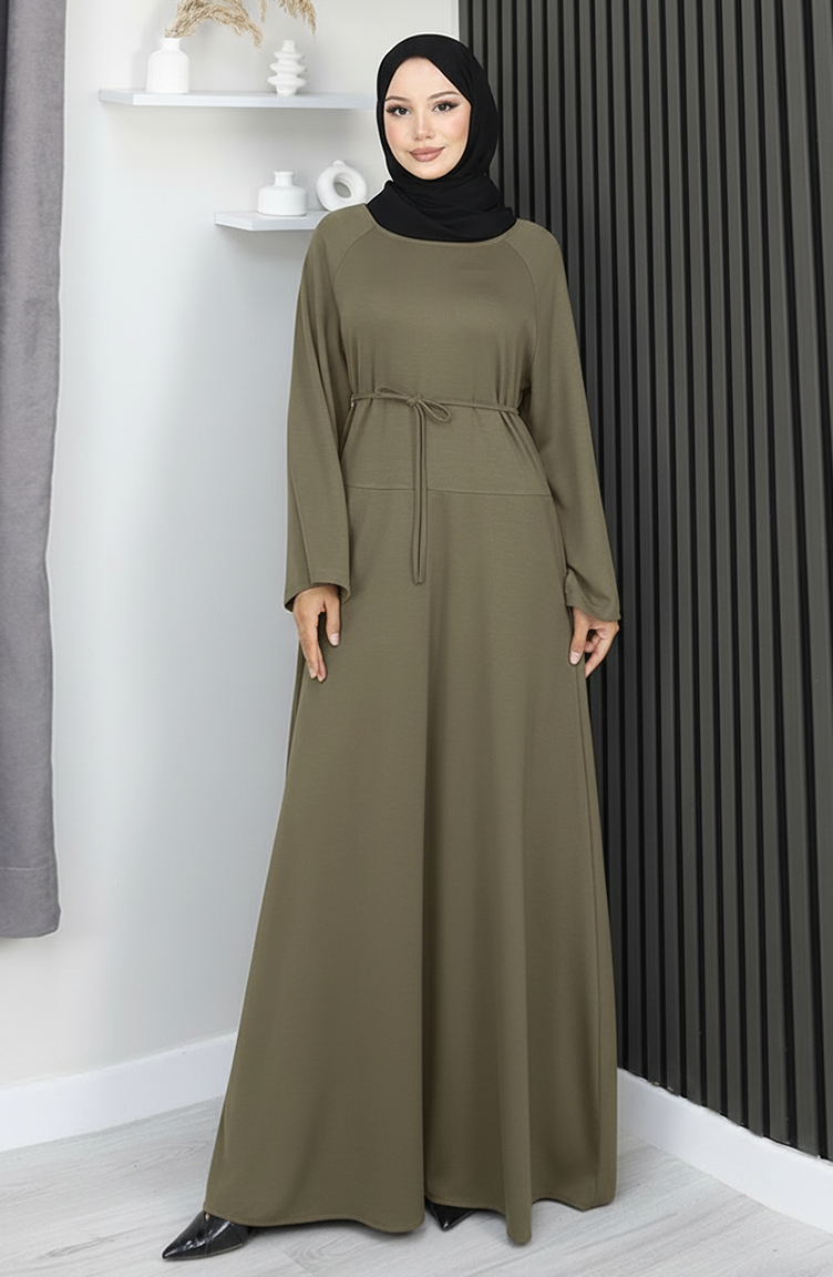 Oysho Fabric Belted Modest Dress 2162-01 Khaki 2162-01