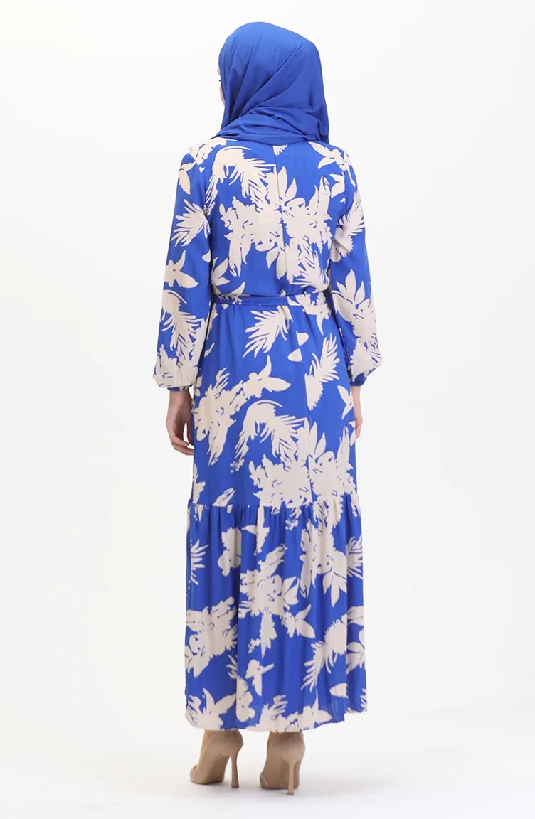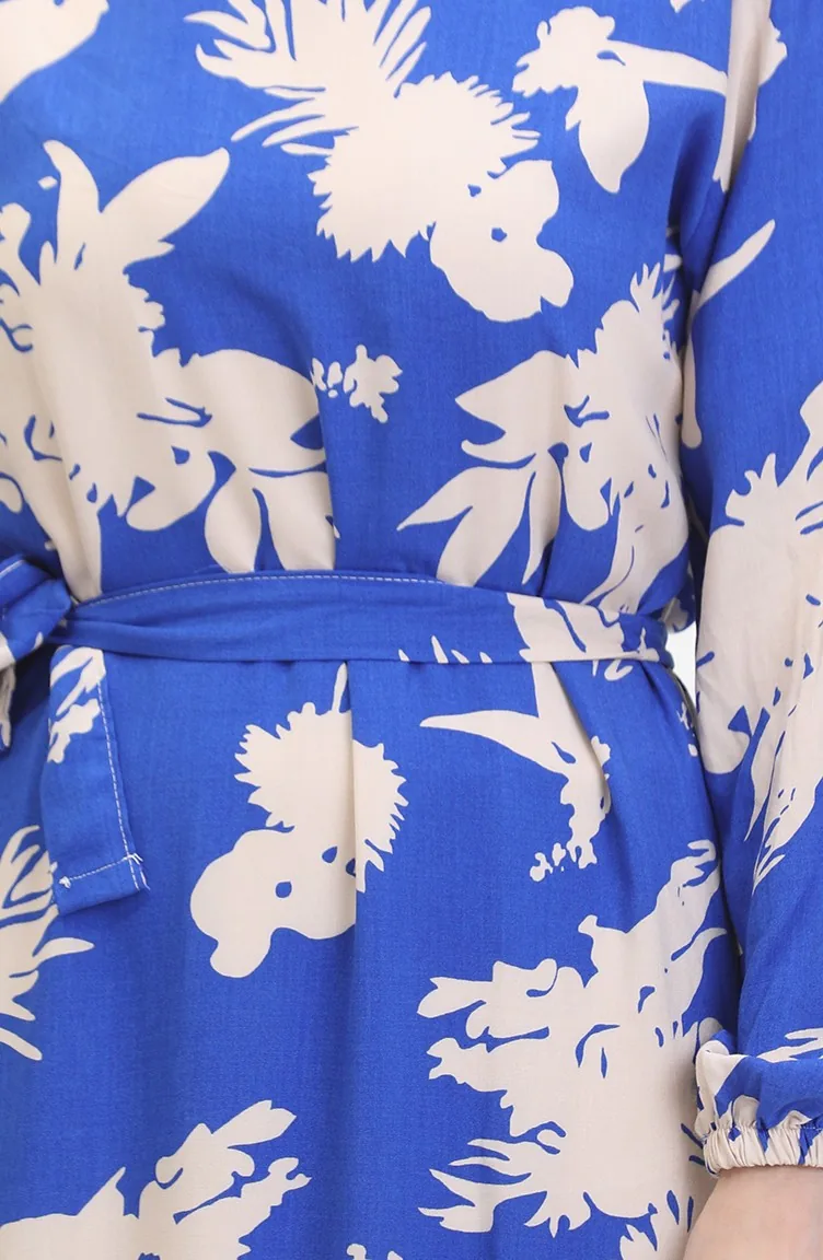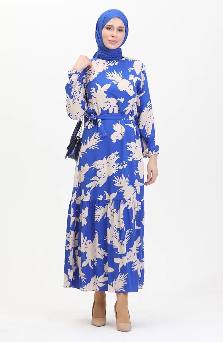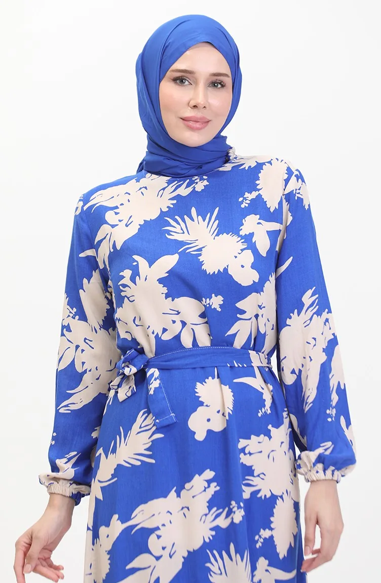 Saxon blue color is used. Viscose is a type of synthetic fabric and is convenient to use. Designed with patterned fabric. The product is used unlined. It's made of elastic sleeves. Dik Yaka. Plus size option available.