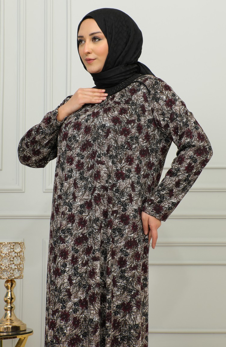 Plus Size Patterned Viscose Dress 4447-02 Claret Red 4447-02