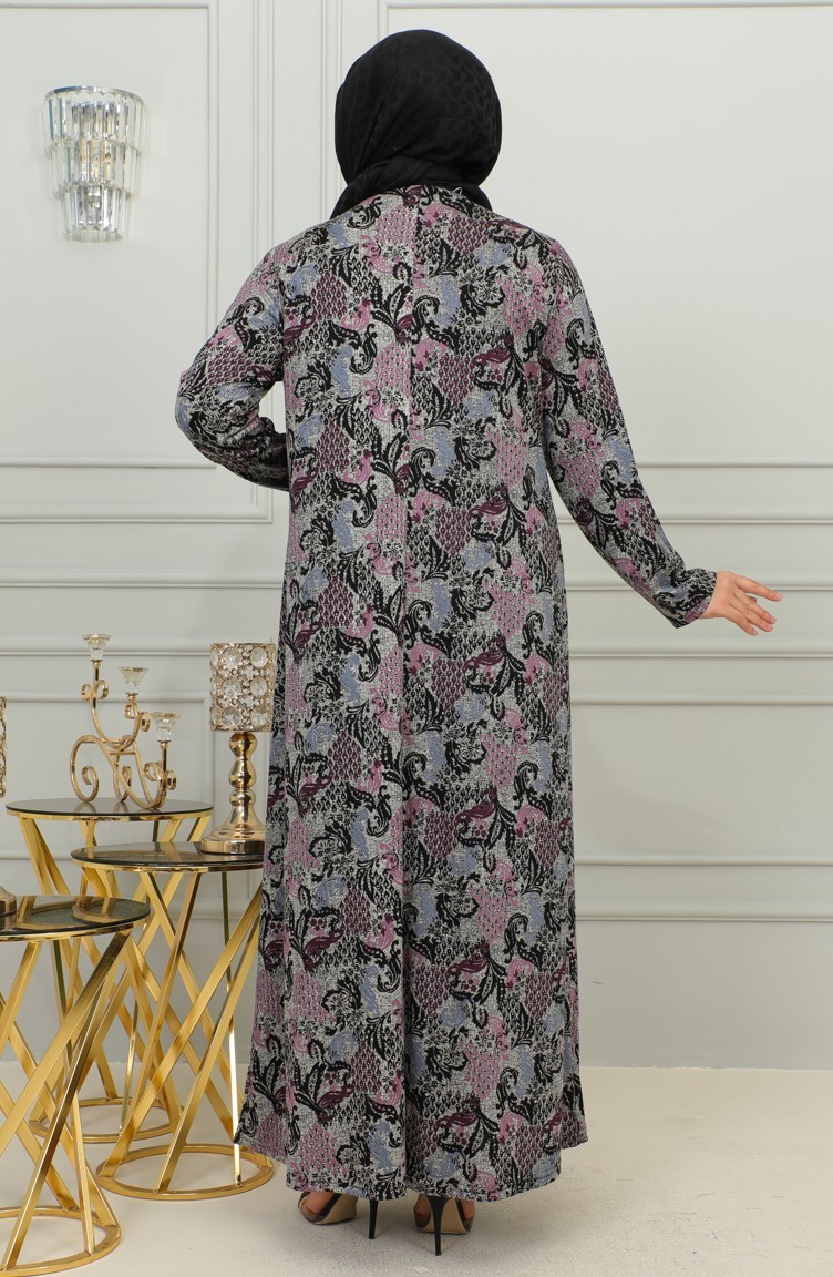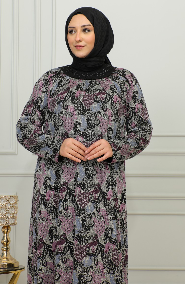 Plus Size Patterned Viscose Dress 4447E-02 Plum 4447E-02