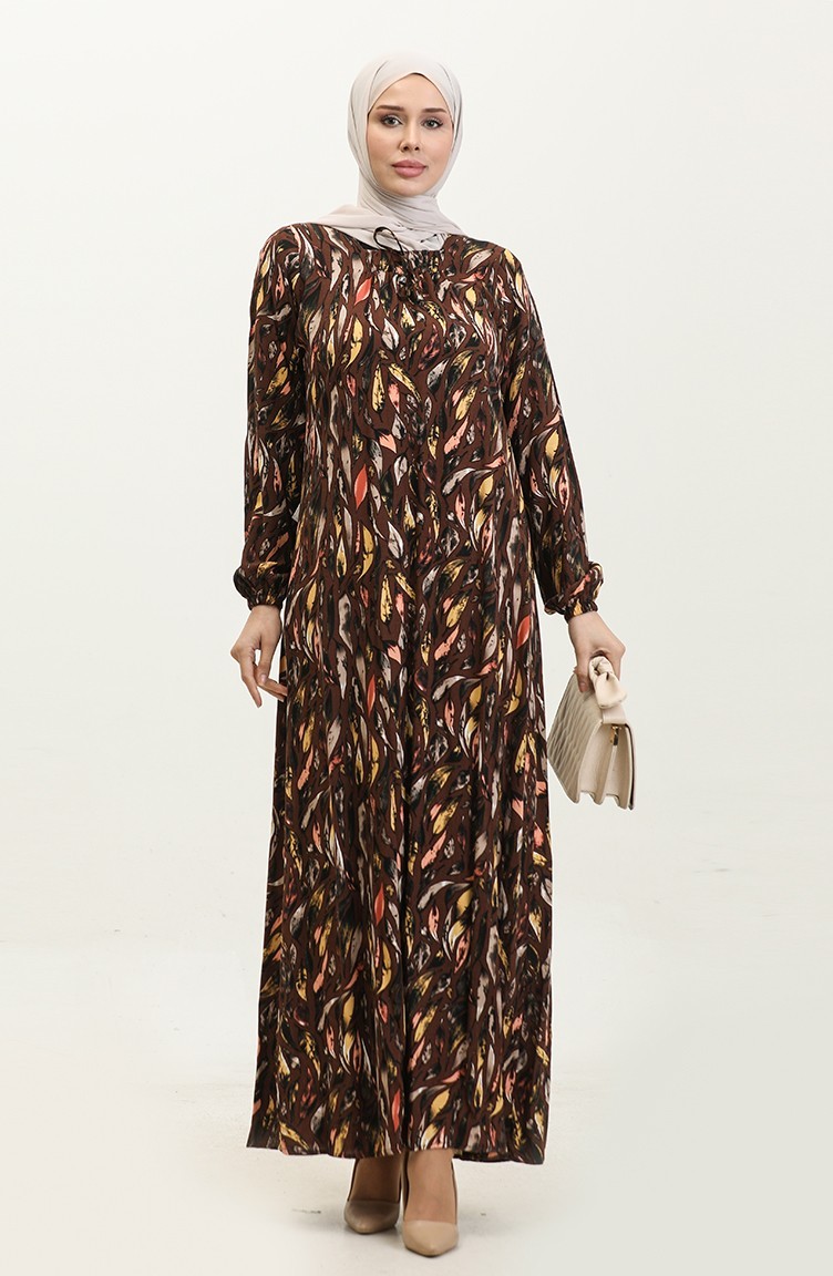 Plus Size Patterned Viscose Dress 44851B-01 Brown 44851B-01