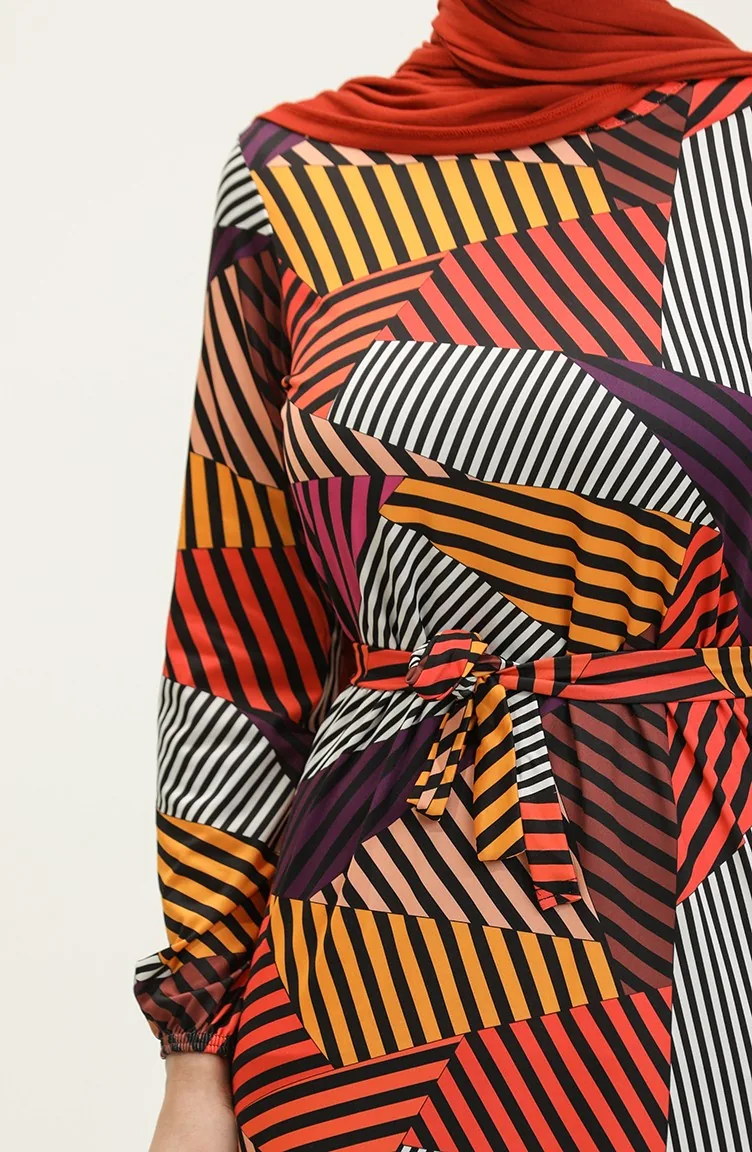 Sandy Long Patterned Seasonal Dress 8692-02 Black Plum 8692-02