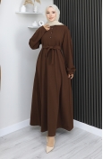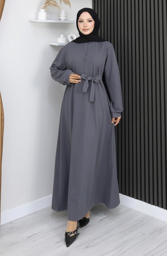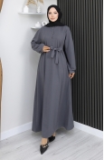 Scuba Fabric Half Button Belted Dress 2167-03 Gray 2167-03