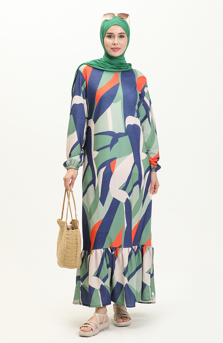 Two Yarn Digital Print Dress 0011-01 Green 0011-01