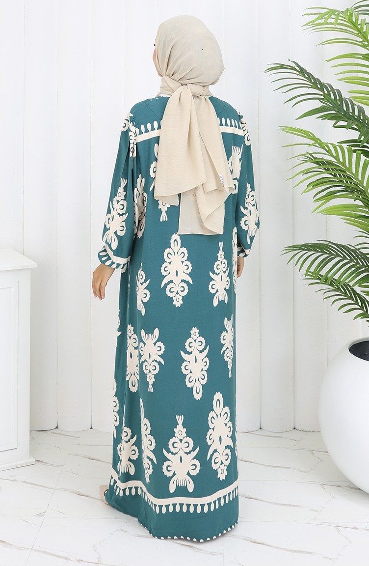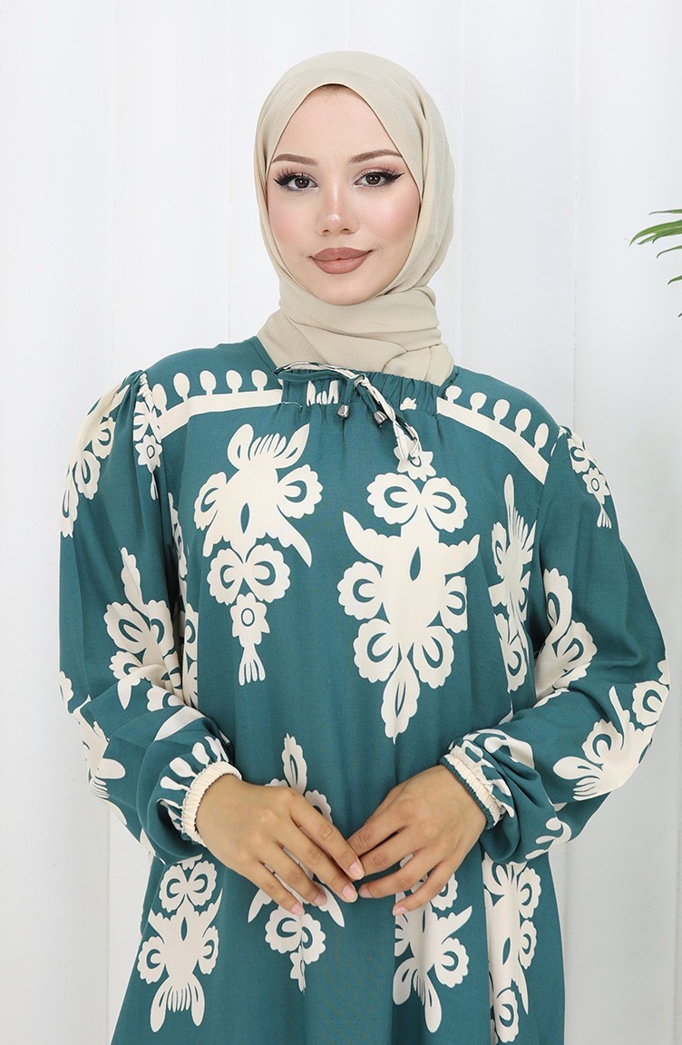 Viscose Collar Dress With Water-Solid Skirt 984585C-03 Almond Green White 984585C-03