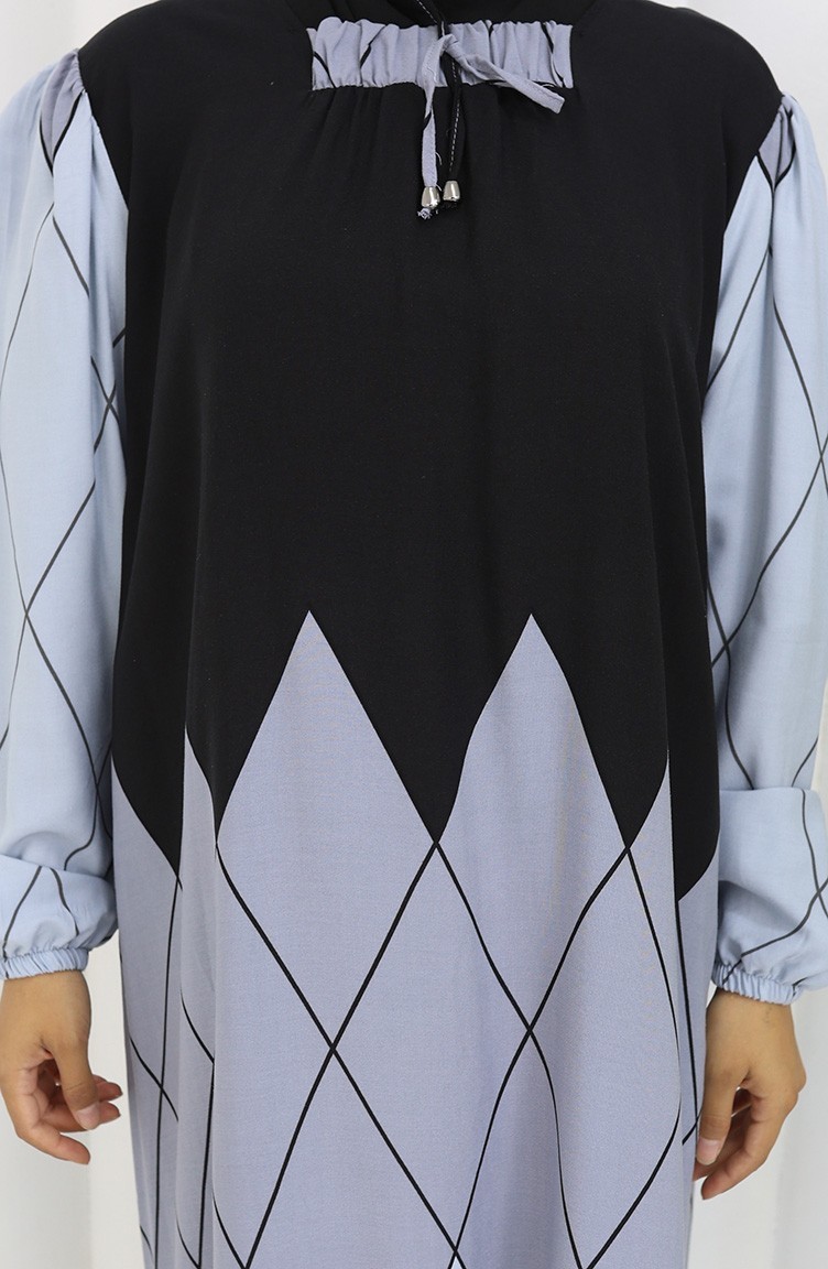 Black color is used. Viscose is a type of synthetic fabric and is convenient to use. Designed with patterned fabric. Long sleeve product. Designed for summer use. Woman. Plus size option available.