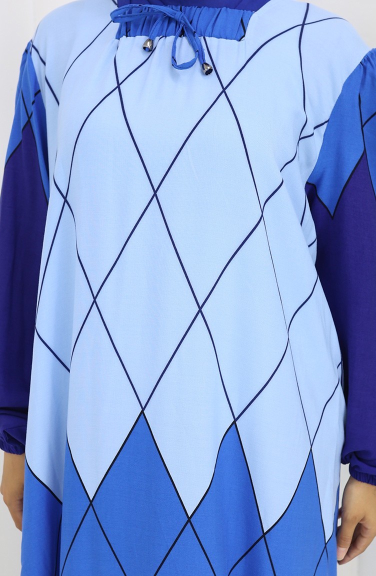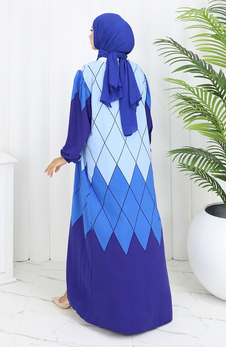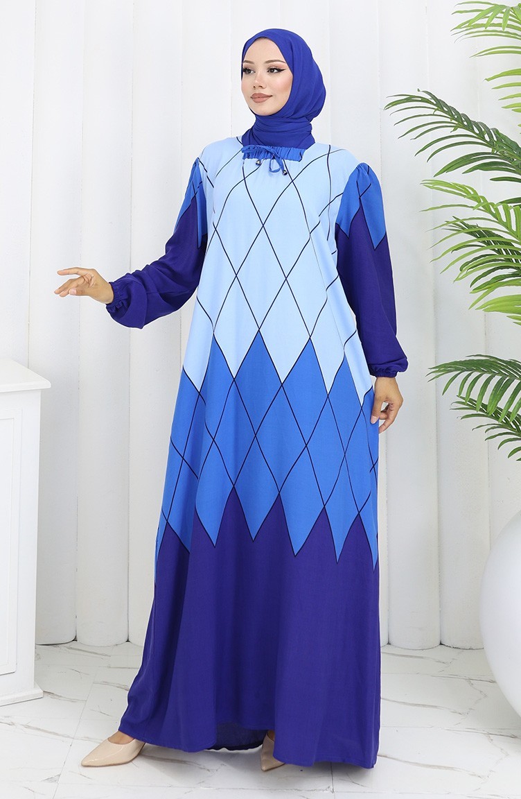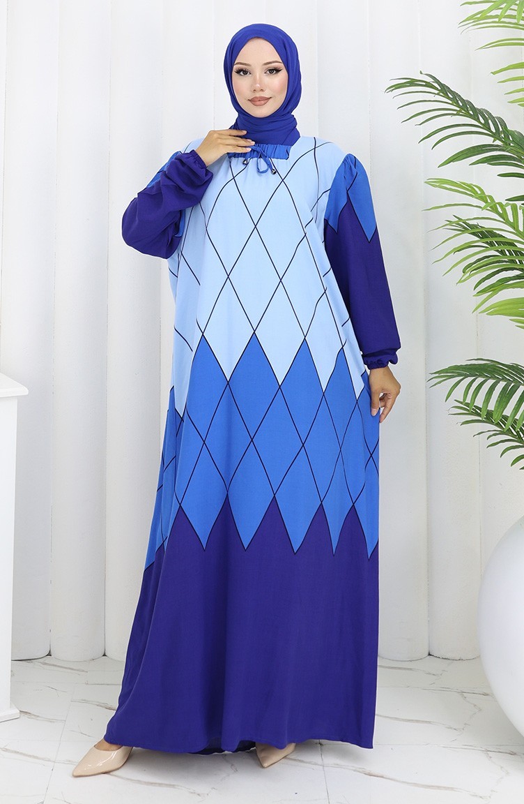Indigo color is used. Viscose is a type of synthetic fabric and is convenient to use. Designed with patterned fabric. Long sleeve product. Designed for summer use. Woman. Plus size option available.