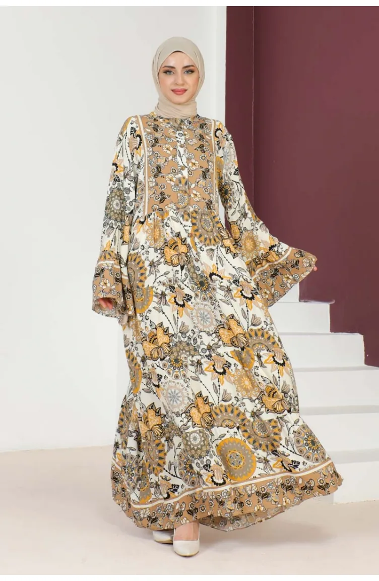 Wide Sleeve Hijab Dress 7113-02 Mink 7113-02