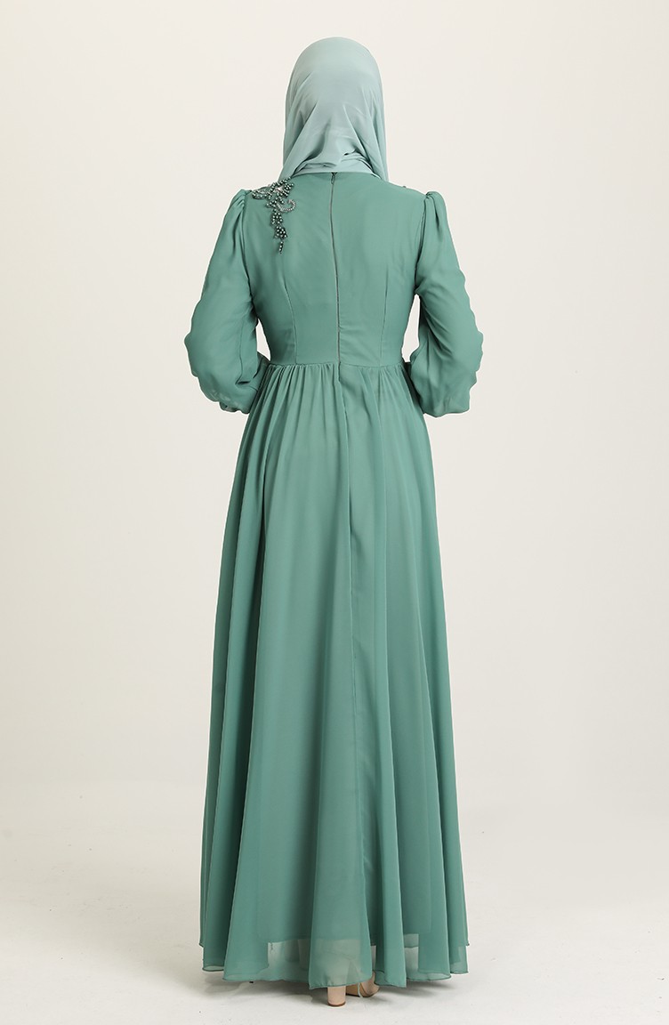 Mint Green Hijab Evening Dress 52796-05