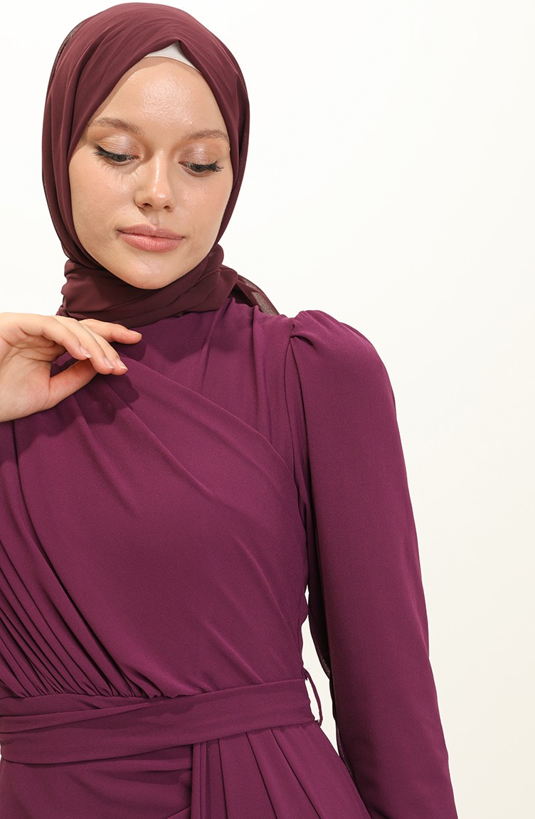 Purple Hijab Evening Dress 5736-01