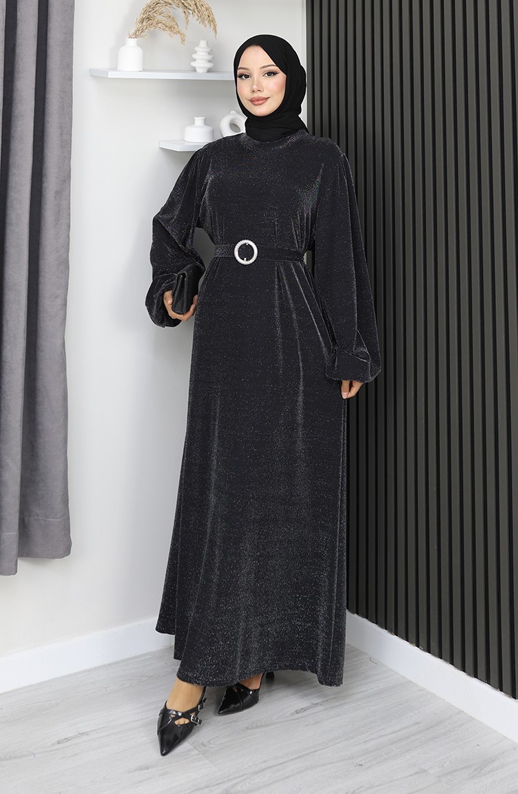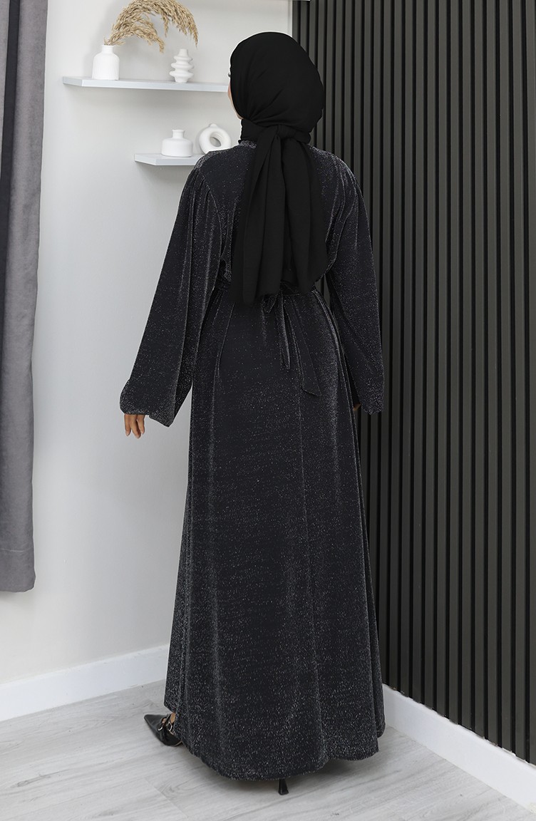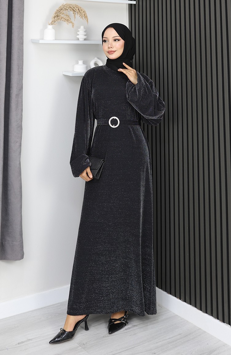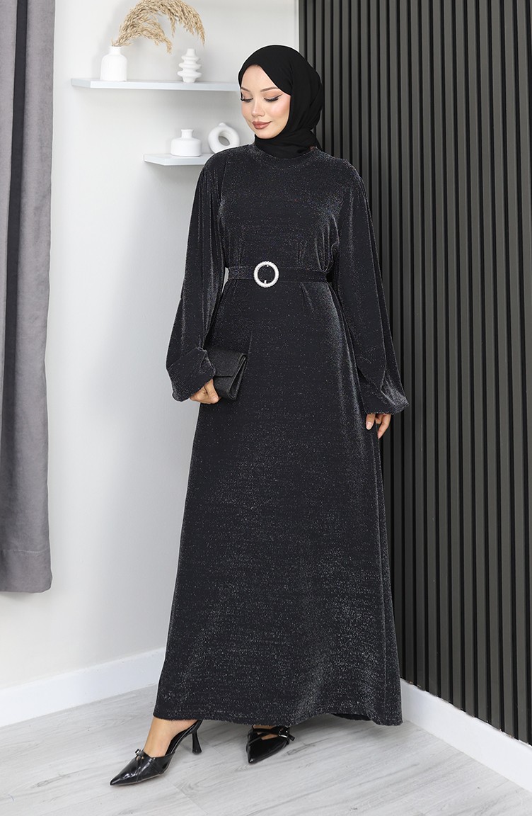 Scuba Fabric Glitter Evening Dress 0207A-01 Black 0207A-01
