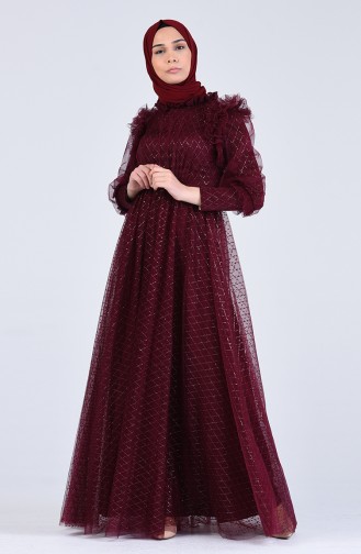 Silvery Tulle Evening Dress 4815-05 Burgundy 4815-05
