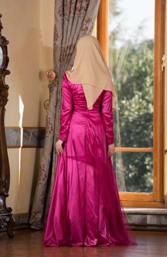 Fuchsia Hijab Evening Dress 0009-02