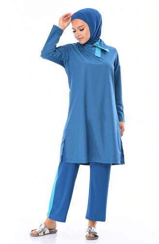 V happy with the material of the hijab and the top (light and fast drying) only of the trouser was the same material.