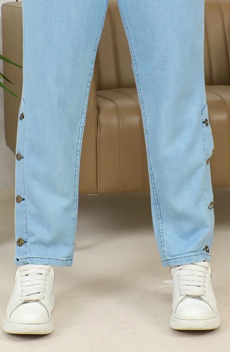 Buttoned Straight Leg Jeans 30131-01 İce Blue 30131-01