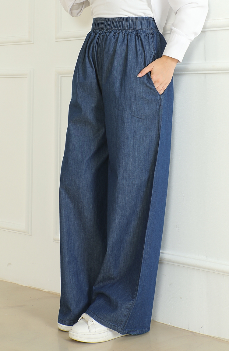 Tencel Elastic Waist Jeans 7568-03 Navy Blue 7568-03