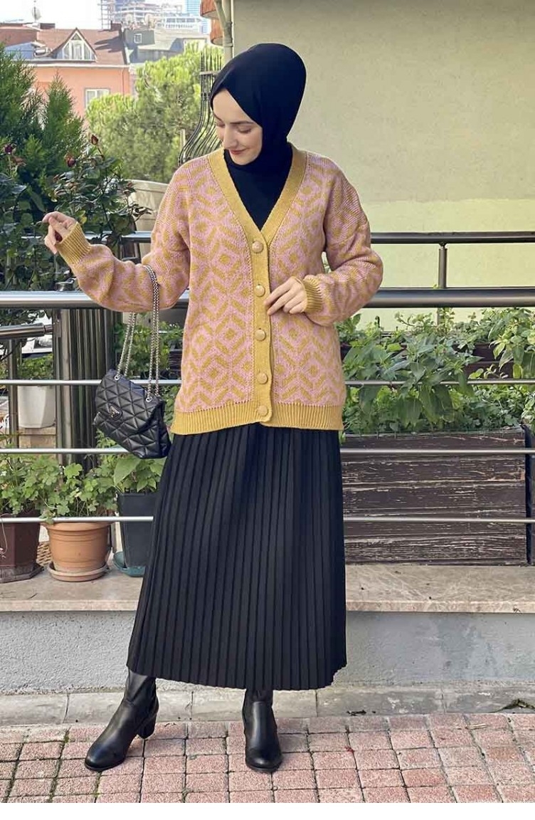 Mustard color is used. Knitwear is an indispensable type of fabric for the winter months. Designed with patterned fabric. Designed from thick fabric.