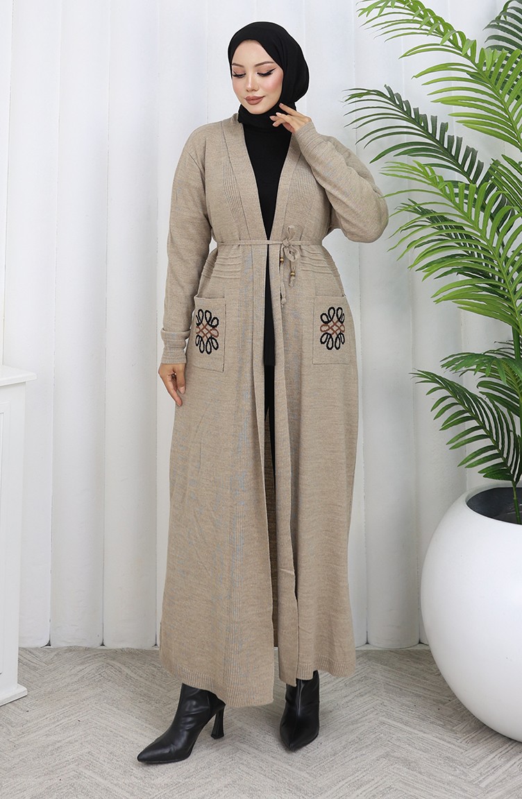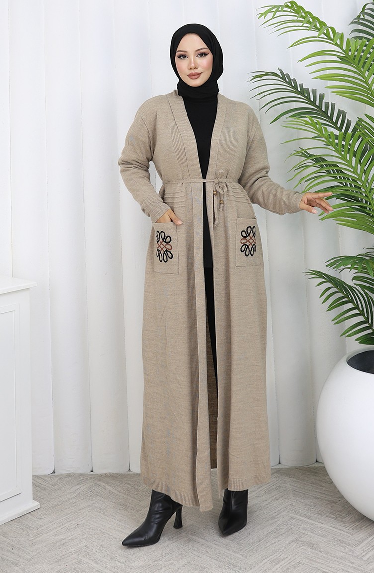 Knitwear Embroidered Long Cardigan 0021-04 Beige 0021-04