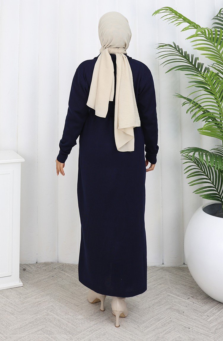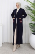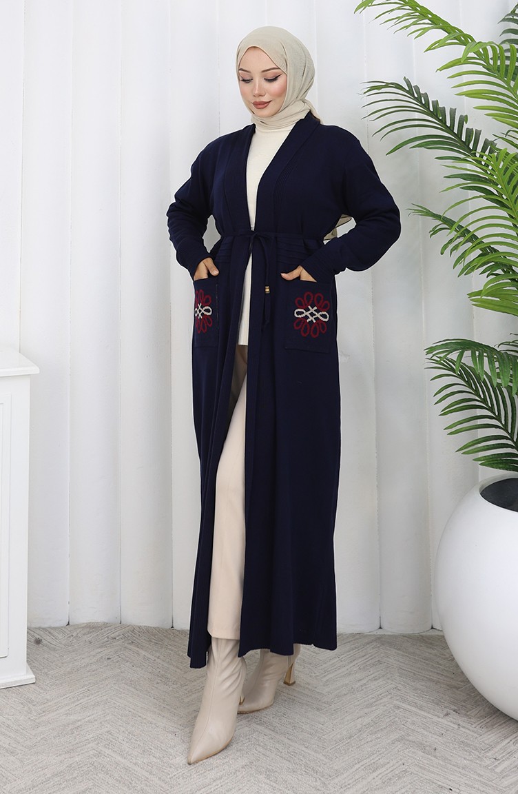 Knitwear Embroidered Long Cardigan 0021-06 Navy Blue 0021-06