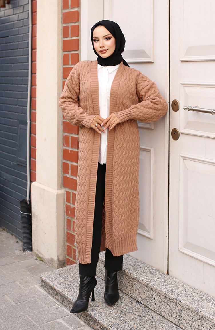 Hair Knit Long Knitwear Cardigan 0386-01 Mink 0386-01