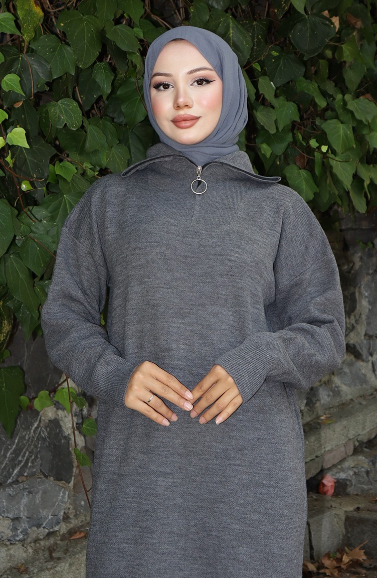Knitted Turtleneck Dress 0511-02 Gray 0511-02