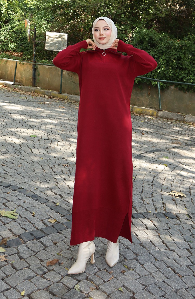 Knitted Turtleneck Dress 0511-06 Claret Red 0511-06