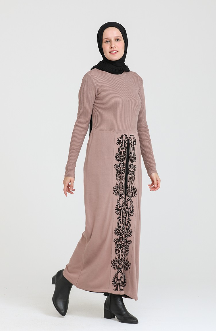 The light pink color is used. Knitwear is an indispensable type of fabric for the winter months. Designed with patterned fabric. The product is used unlined. Long sleeve product. The Zero collar is preferred for all types of clothing. Designed from thick fabric. Standard body size can be used in many sizes of body sizes.