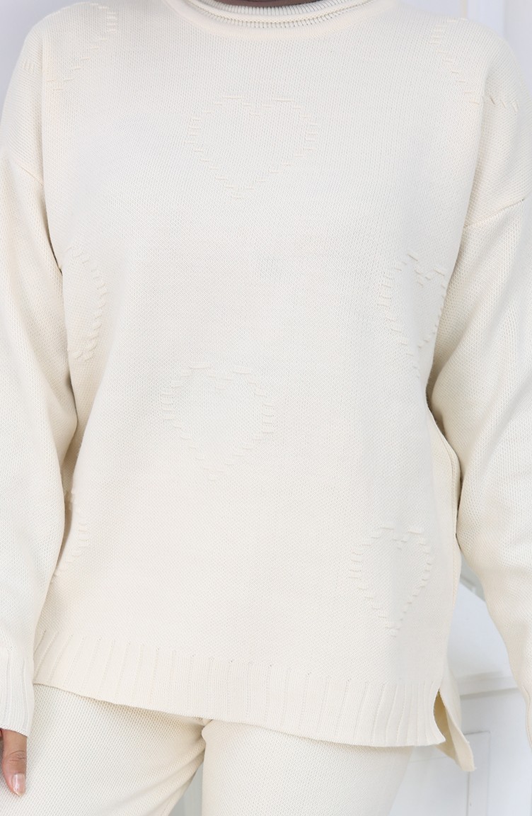Knitwear Heart Patterned Sweater Trousers Two Piece Set 0016-01 Beige 0016-01