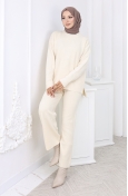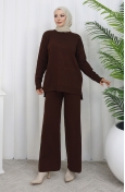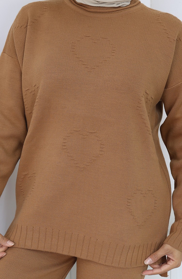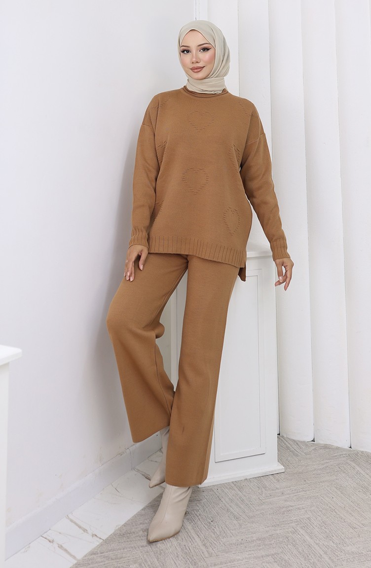 Knitwear Heart Patterned Sweater Trousers Two Piece Set 0016-03 Milk Coffee 0016-03