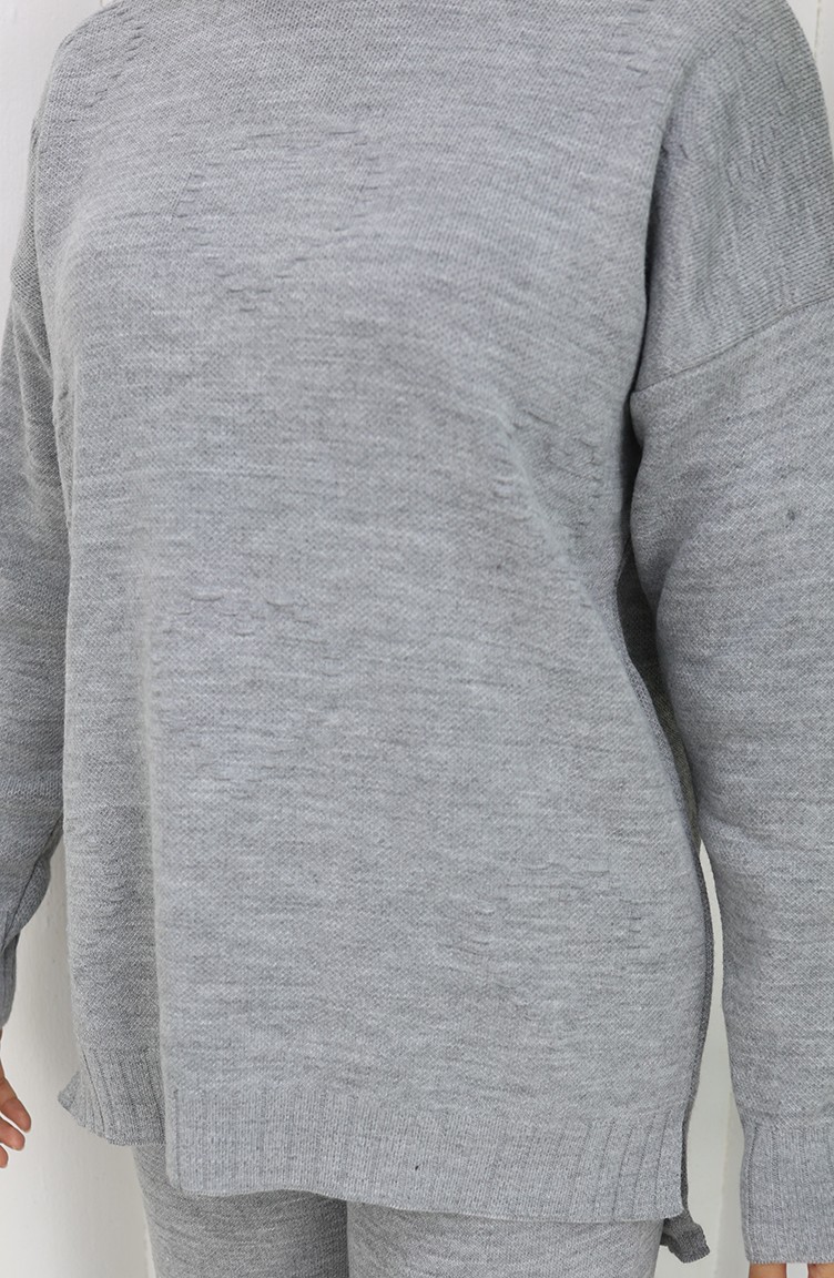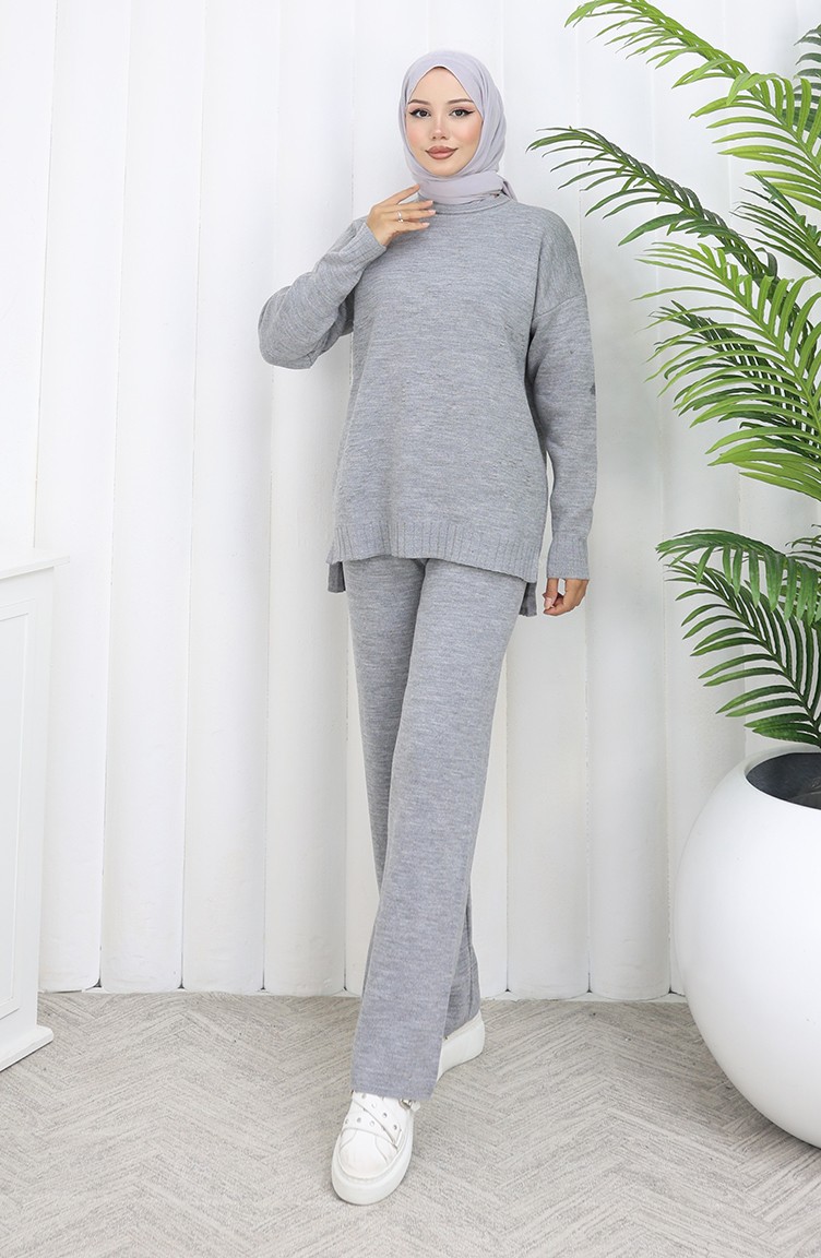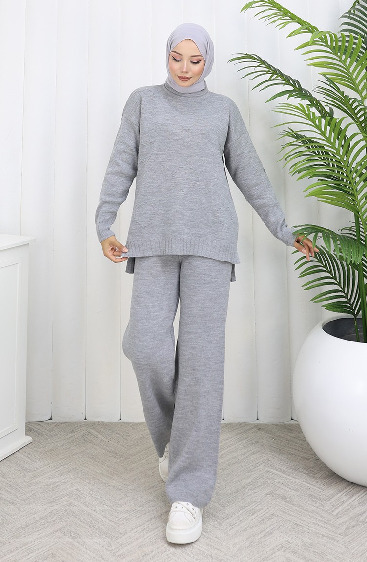 Knitwear Heart Patterned Sweater Trousers Two Piece Set 0016-06 Gray 0016-06