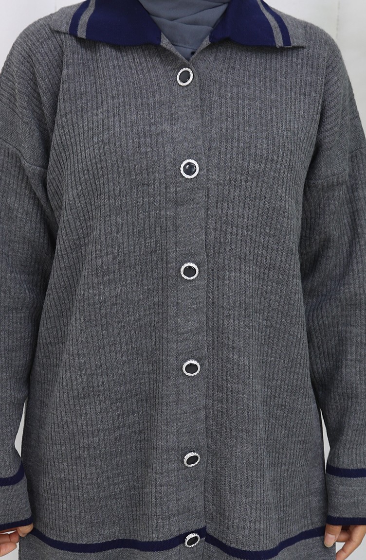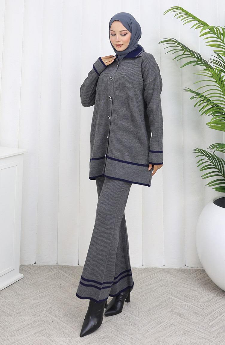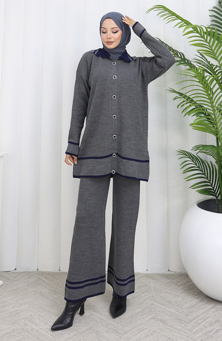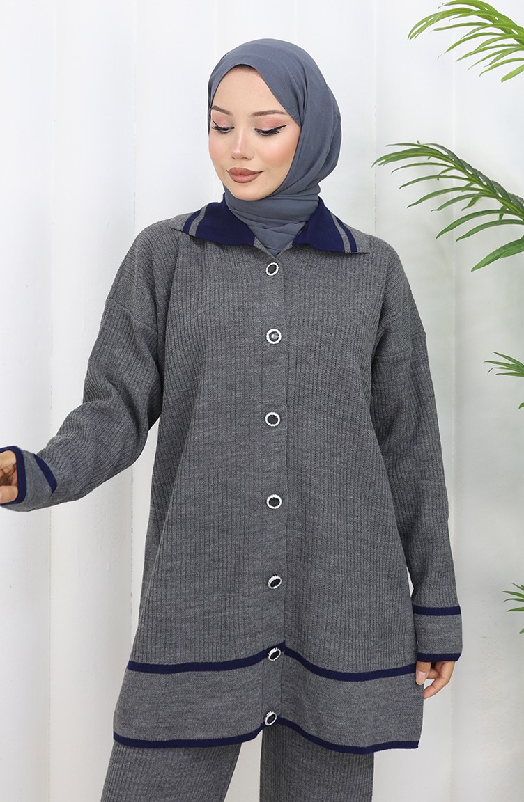 Knitwear Polo Collar Buttoned Tunic Trousers Two Piece Suit 1108-05 Gray 1108-05