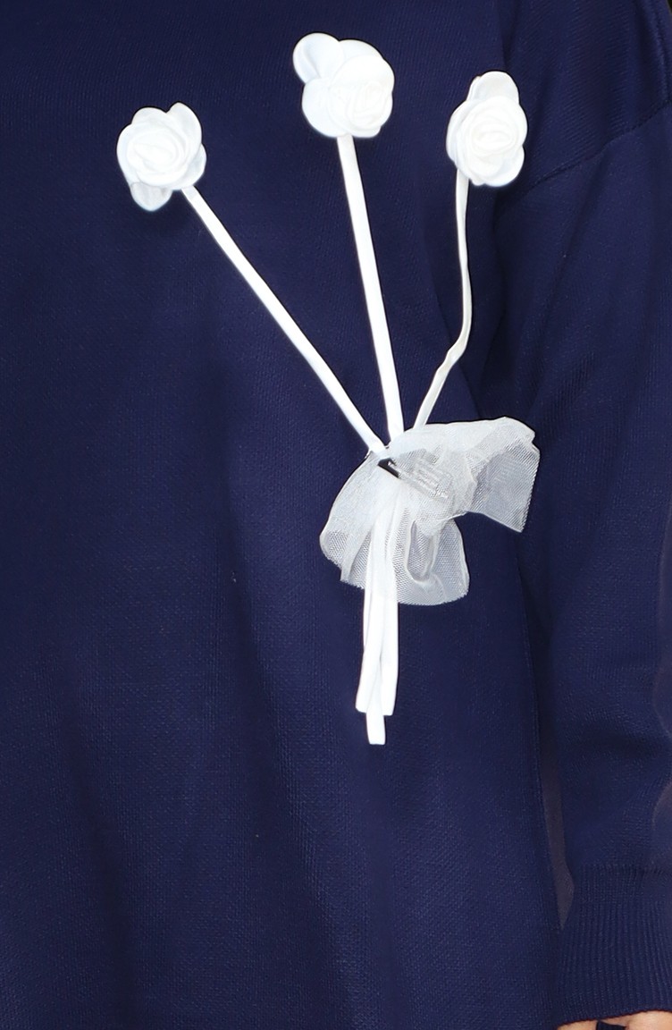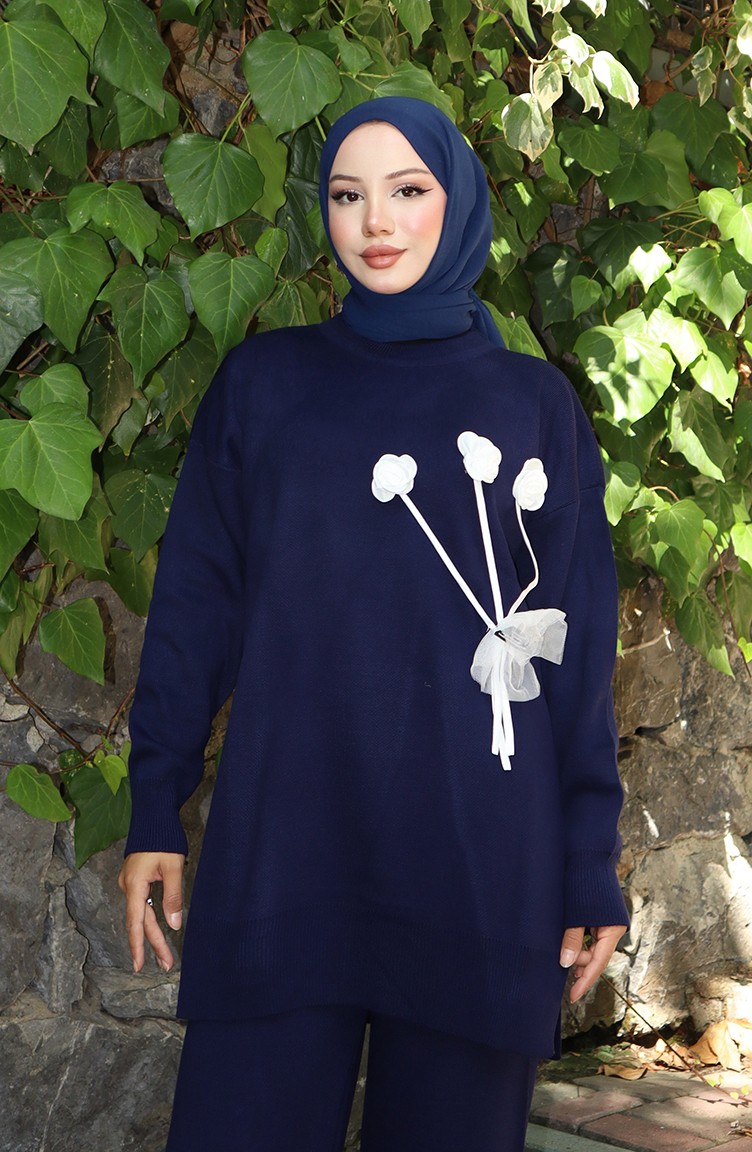 Knitwear Rose Detailed Tunic Trousers Two Piece Suit 1030-04 Navy Blue 1030-04