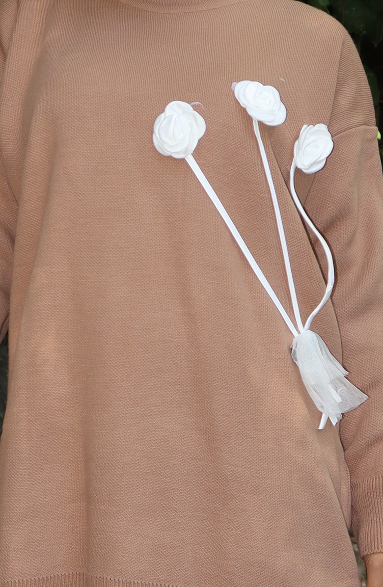 Knitwear Rose Detailed Tunic Trousers Two Piece Suit 1030-08 Milk Coffee 1030-08