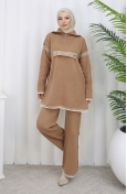 Knitwear Stand Collar Zippered Tunic Trousers Two Piece Suit 1105-04 Brown 1105-04