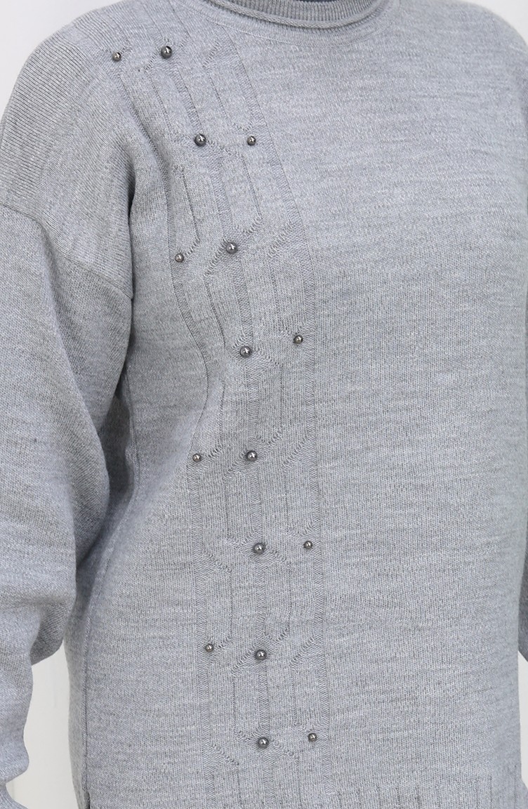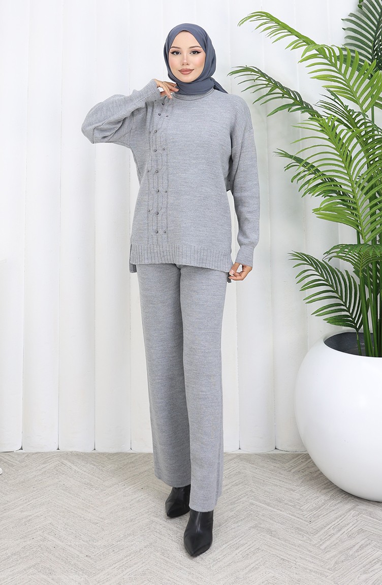Knitwear Stone Detailed Sweater Trousers Two Piece Set 0014-06 Gray 0014-06