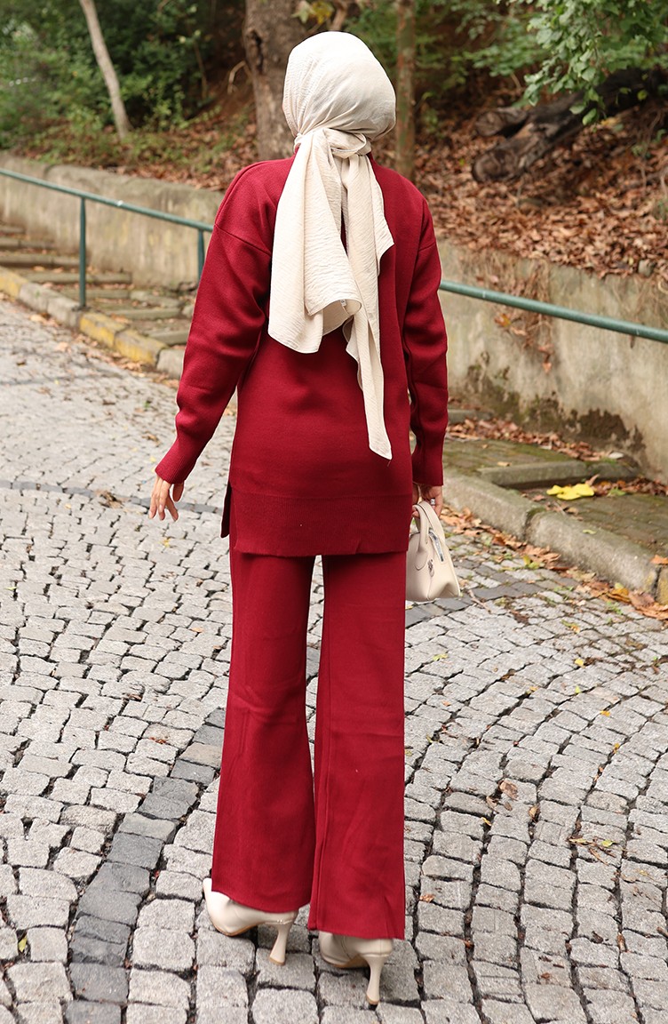 Knitwear Stone Printed Tunic Trousers Two Piece Suit 1104-03 Claret Red 1104-03