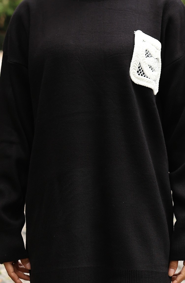 Knitwear Tunic Trousers Two Piece Suit 1029-04 Black 1029-04